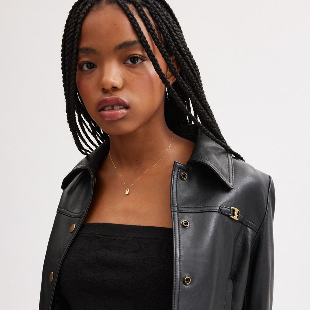 Coach 14 K Gold Quilted Signature Padlock Pendant Necklace Goud | COH866103