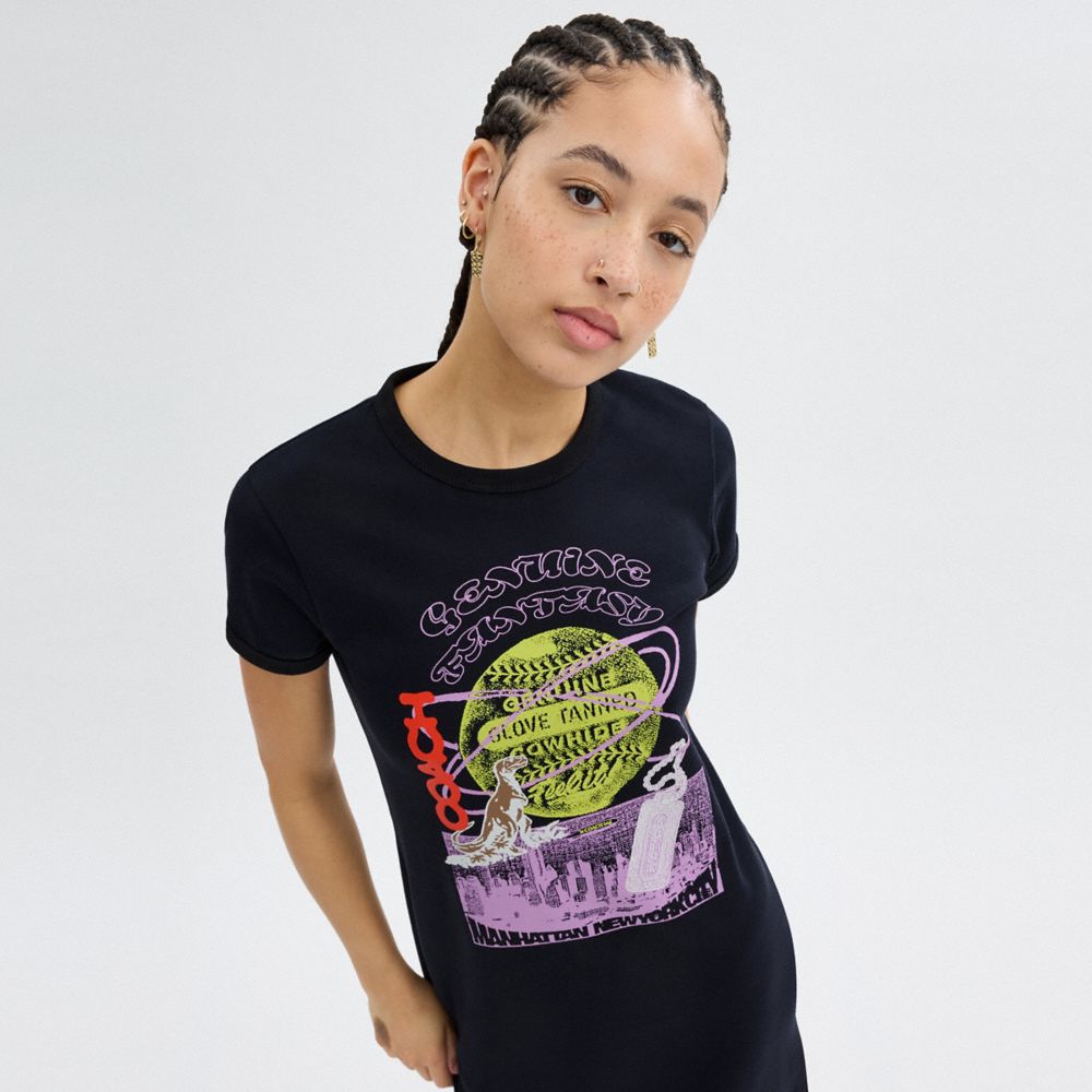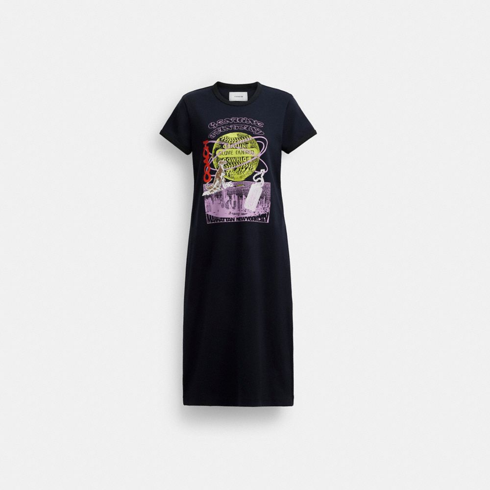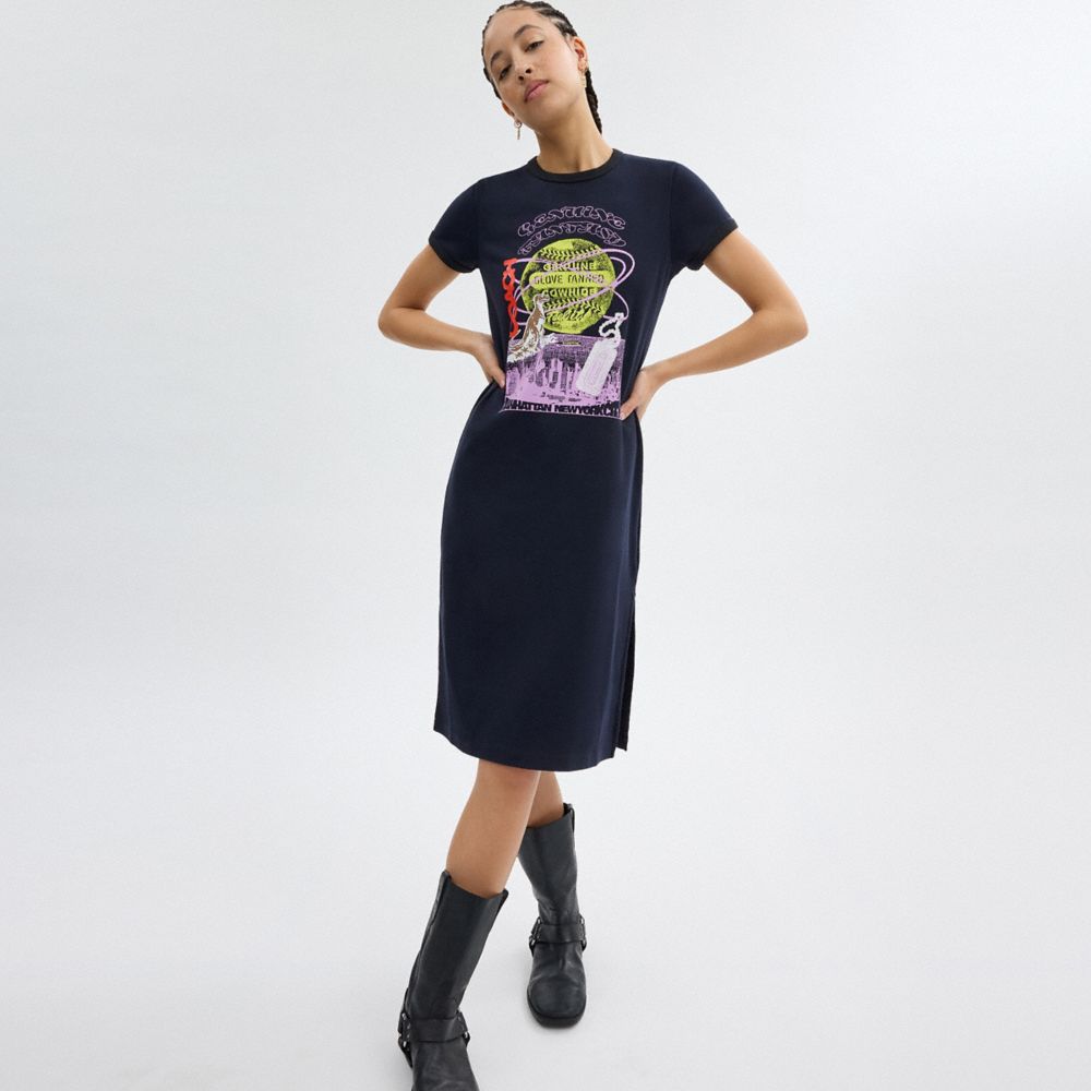 Coach 90's T Shirt Dress In Organic Cotton Donkerblauw | COH866070