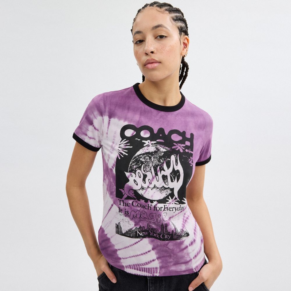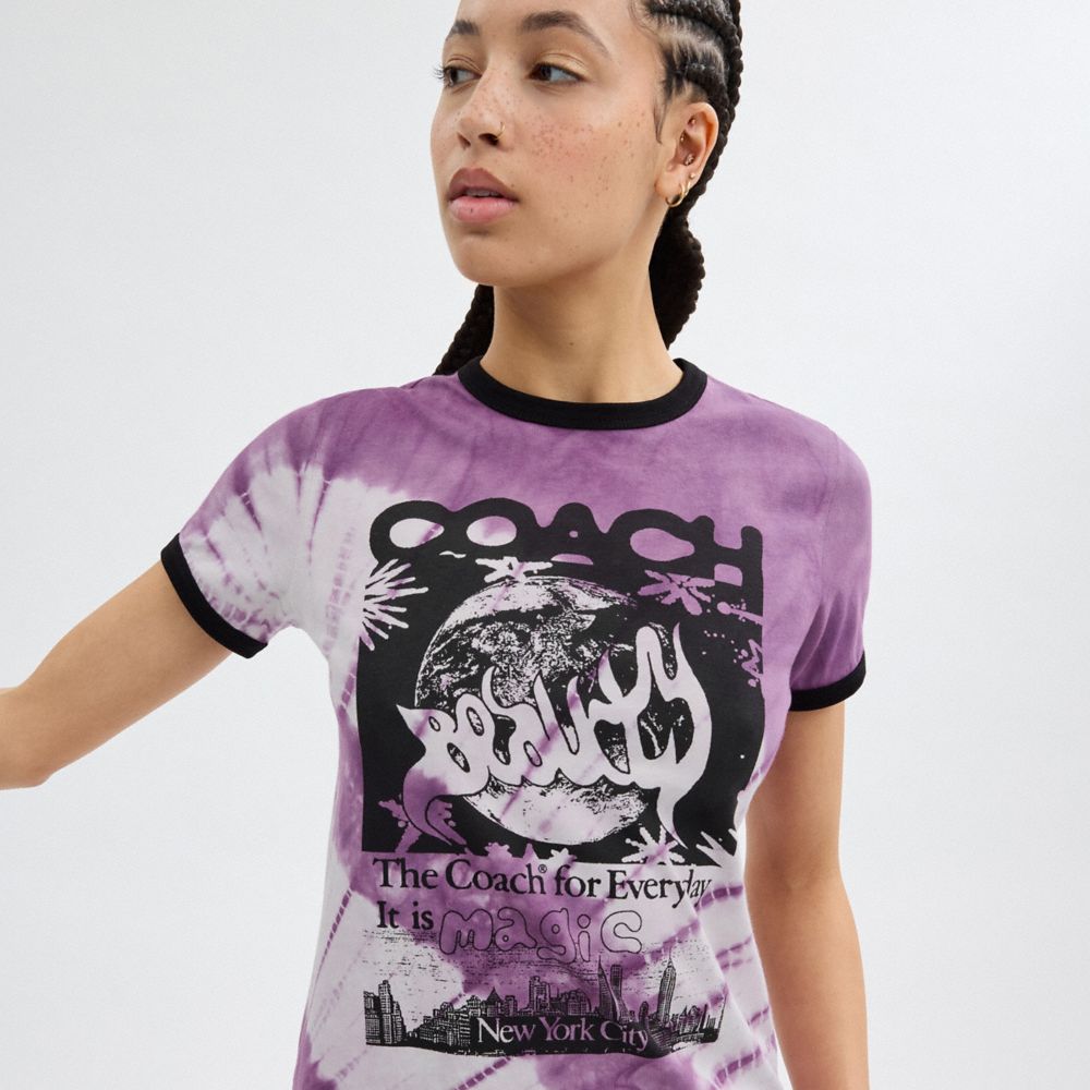 Coach 90's Tie Dye T Shirt In Organic Cotton Paars Gekleurd | COH866010