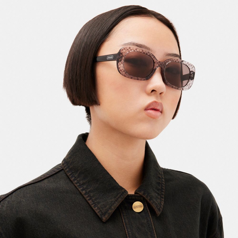 :: Coach Badge Rounded Square Sunglasses Grijs | COH866397