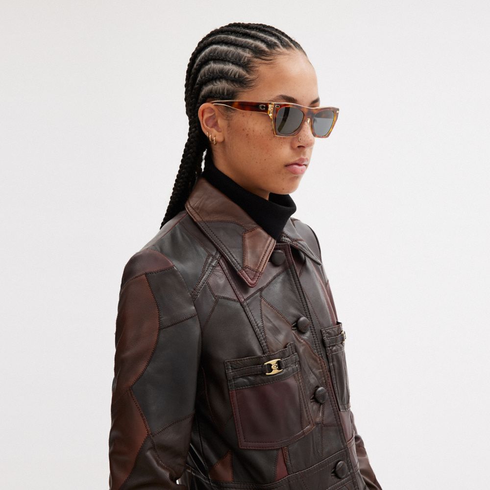 Packaged in a protective Coach case with microfiber cleaning cloth