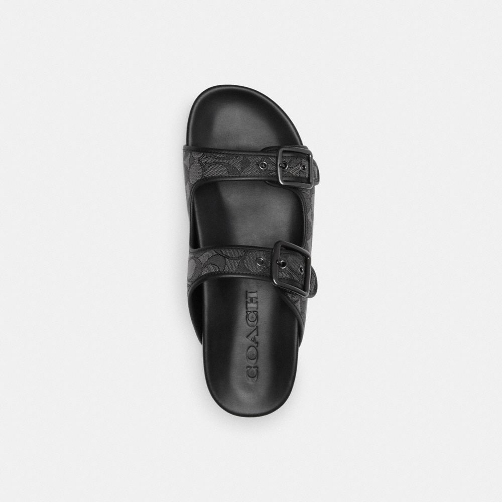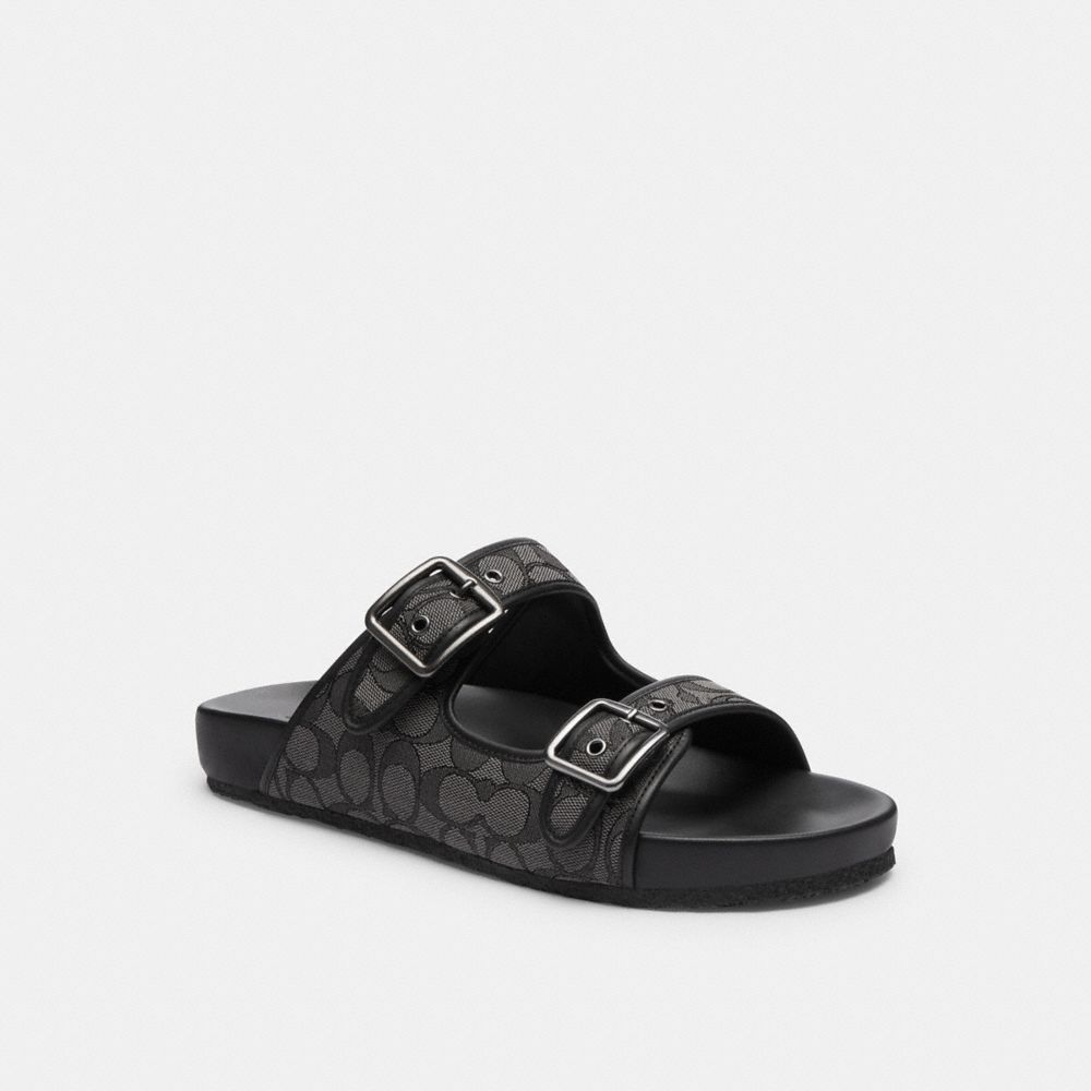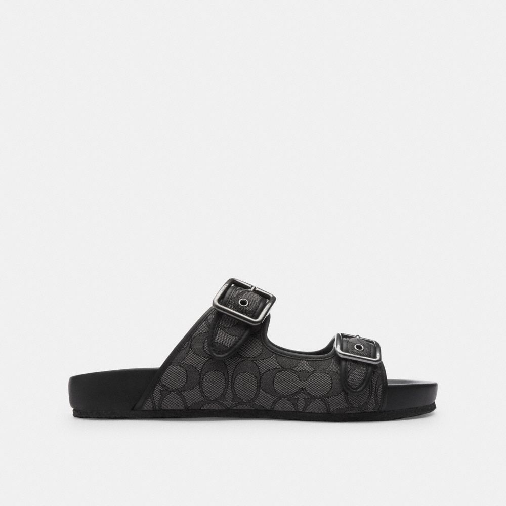Coach Buckle Strap Sandal In Signature Jacquard Zwart | COH866850