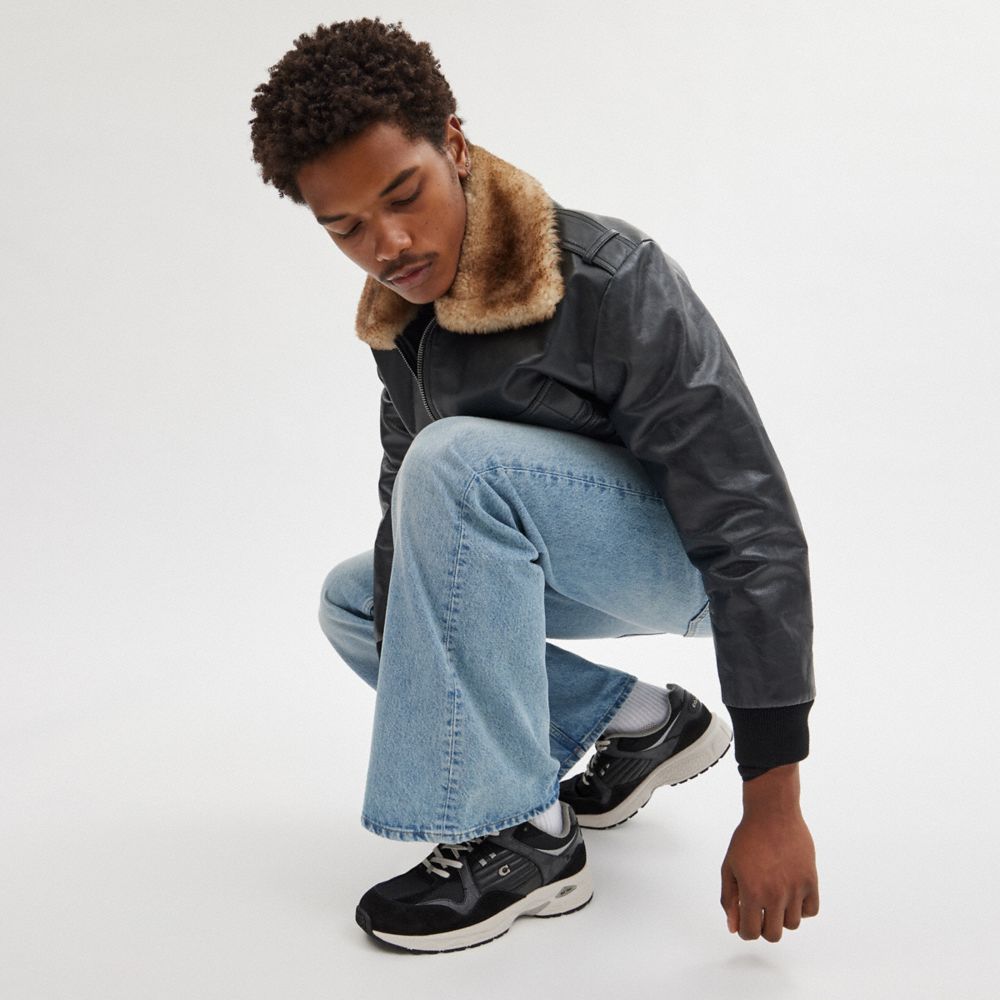 :: Coach C301 Sneaker With Signature Canvas Grijs Zwart | COH866781