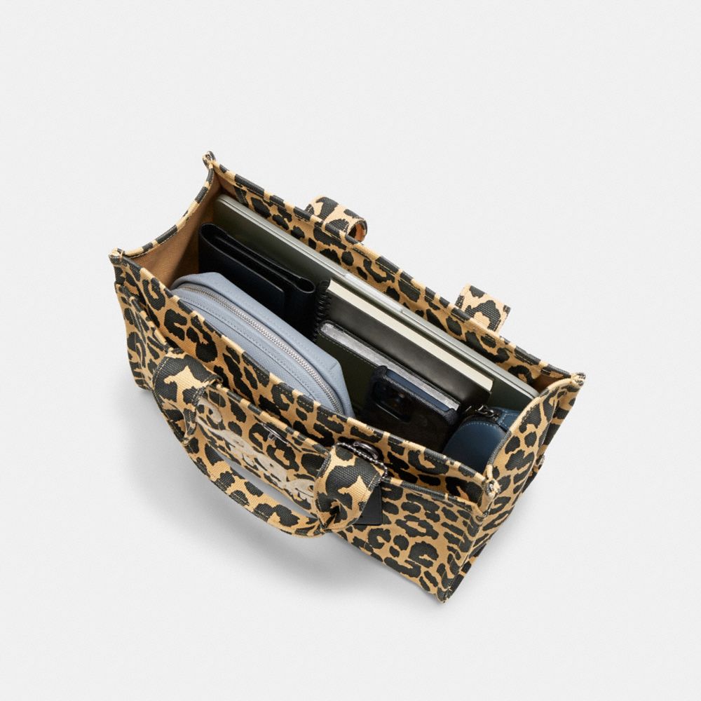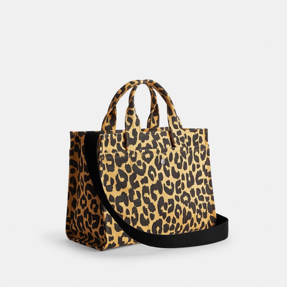 Coach Cargo Tote Bag With Leopard Print Zilver Leopard | COH865102