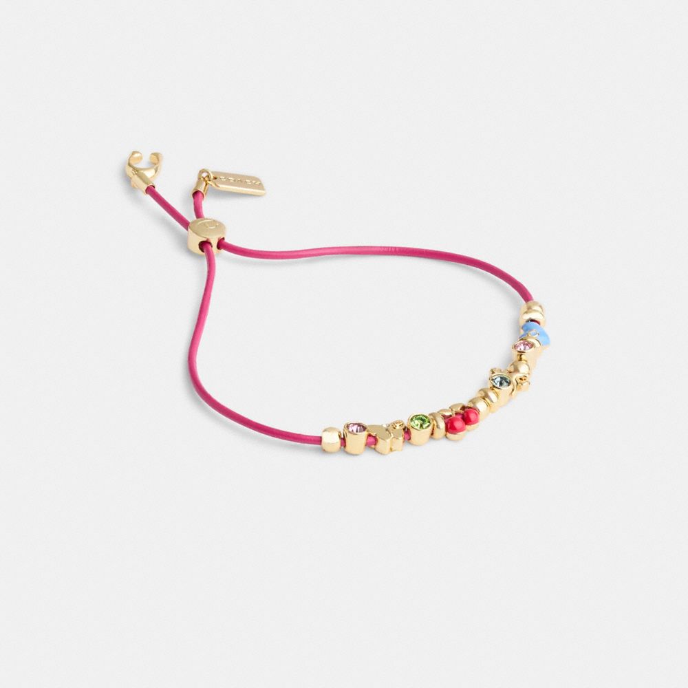 Coach Cherry And Heart Multi Charm Leather Slider Bracelet Goud Gekleurd | COH866228