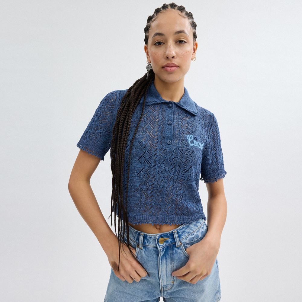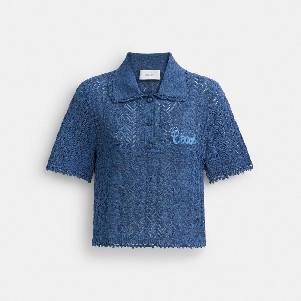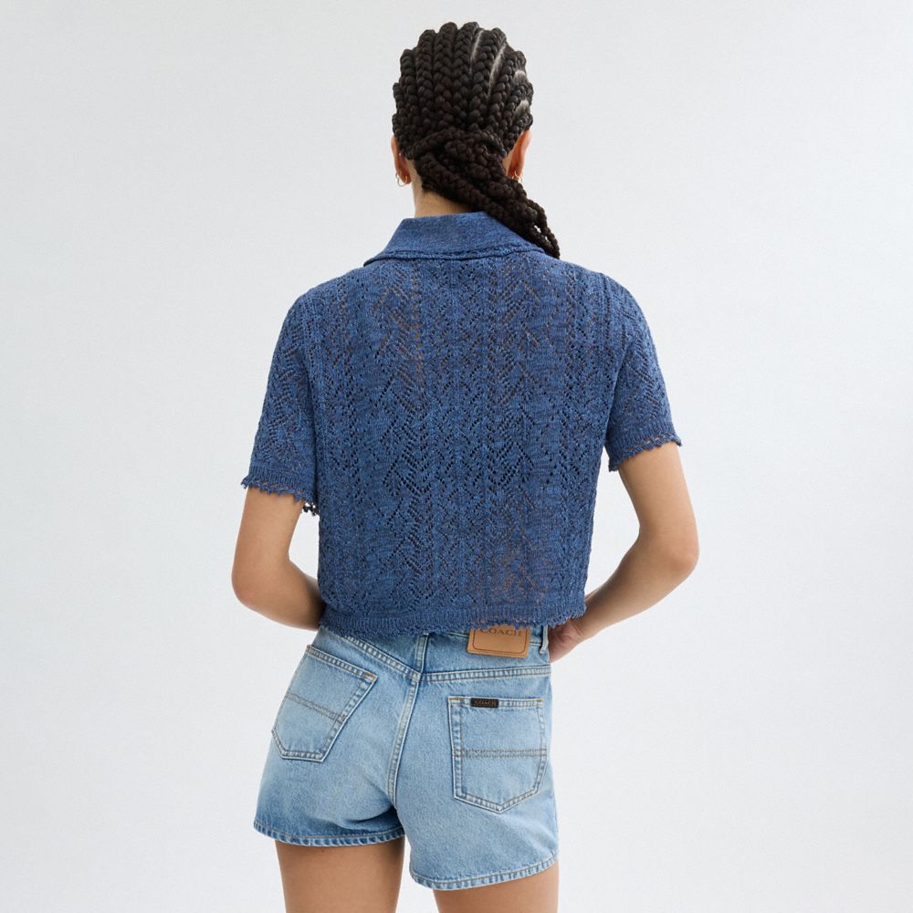:: Coach Cropped Knit Polo Top Donkerblauw | COH866005