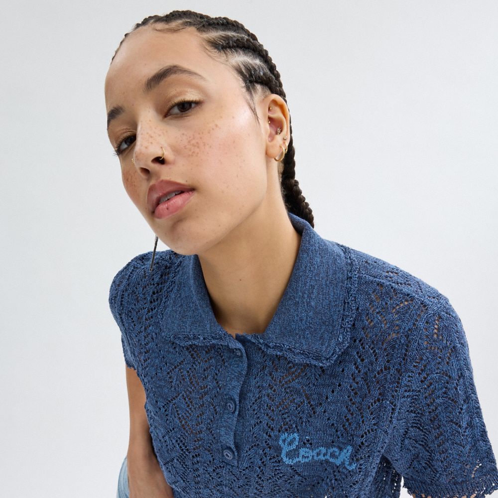 Coach Cropped Knit Polo Top Donkerblauw | COH866005