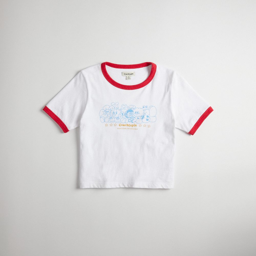 Coach Cropped Tee: Coachtopia Creatures Wit Rood Gekleurd | COH865970