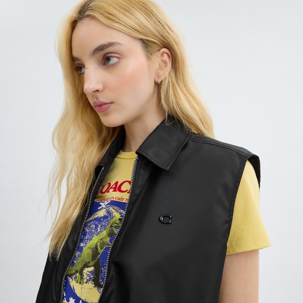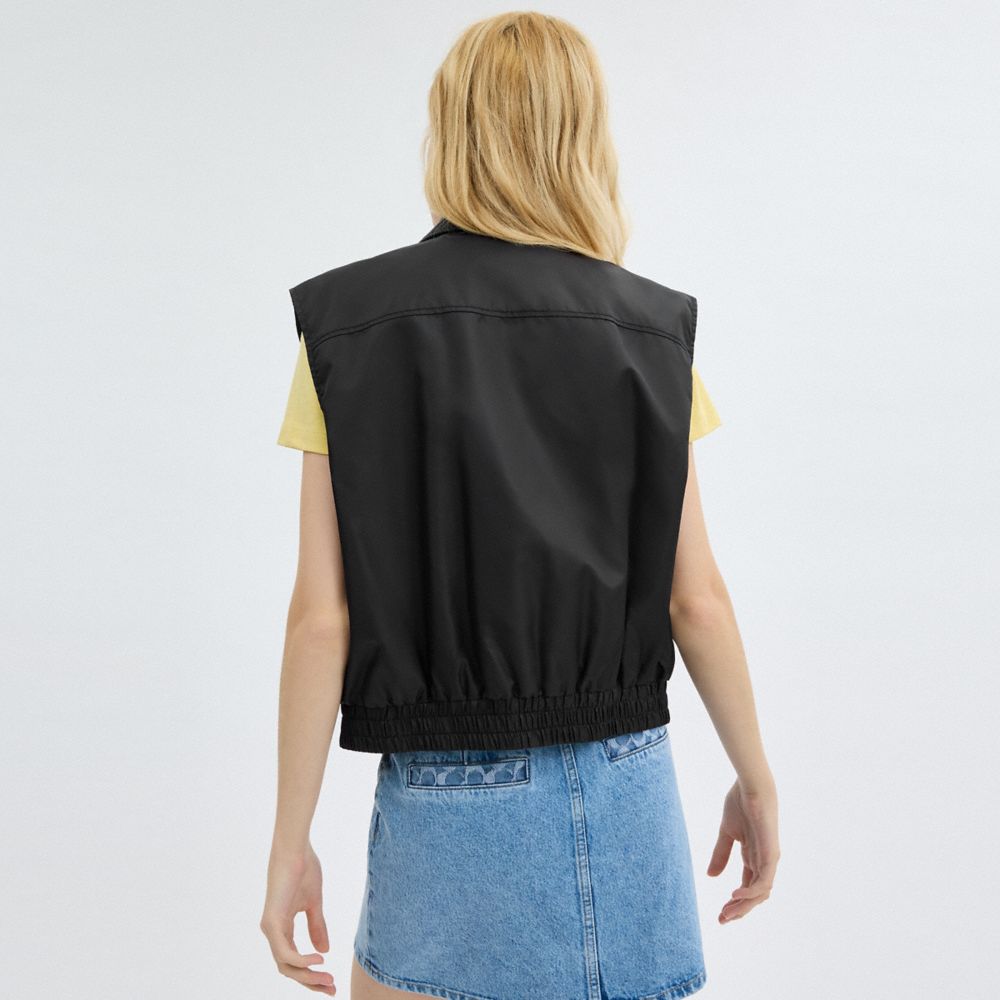 Coach Cropped Vest In Recycled Nylon Zwart | COH865922