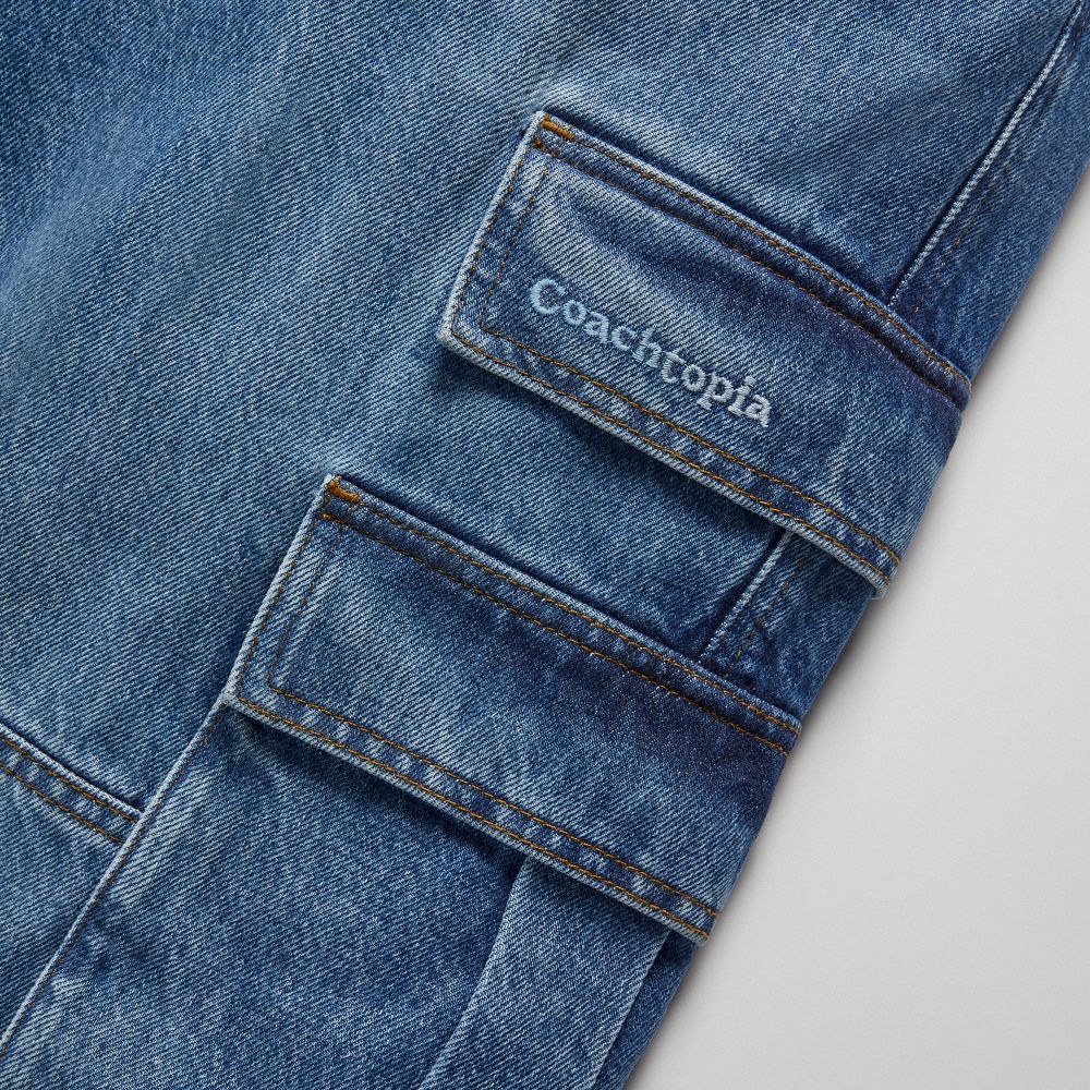 Coach Denim Cargo Pant In 31% Recycled Cotton Blauw | COH866022