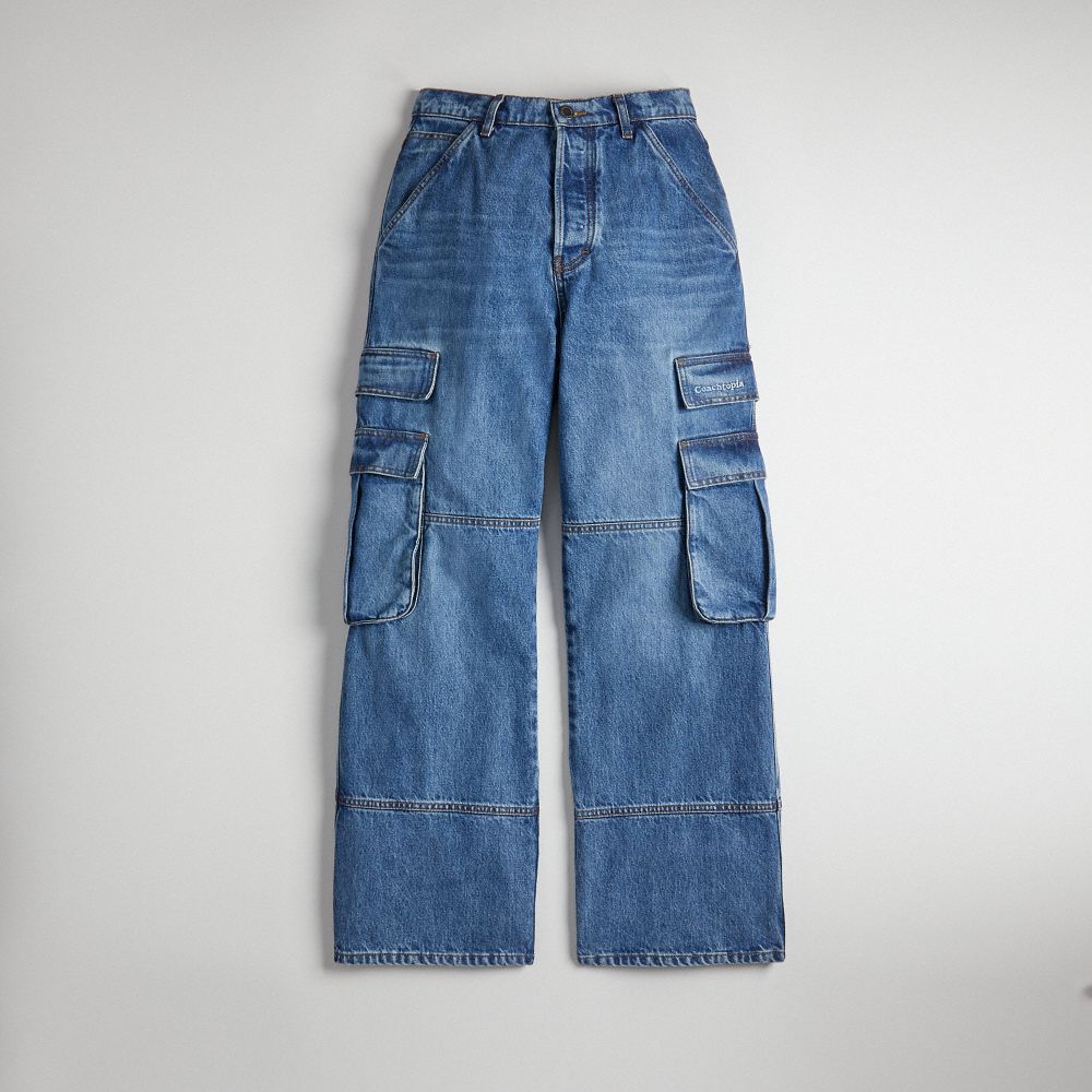 Coach Denim Cargo Pant In 31% Recycled Cotton Blauw | COH866936
