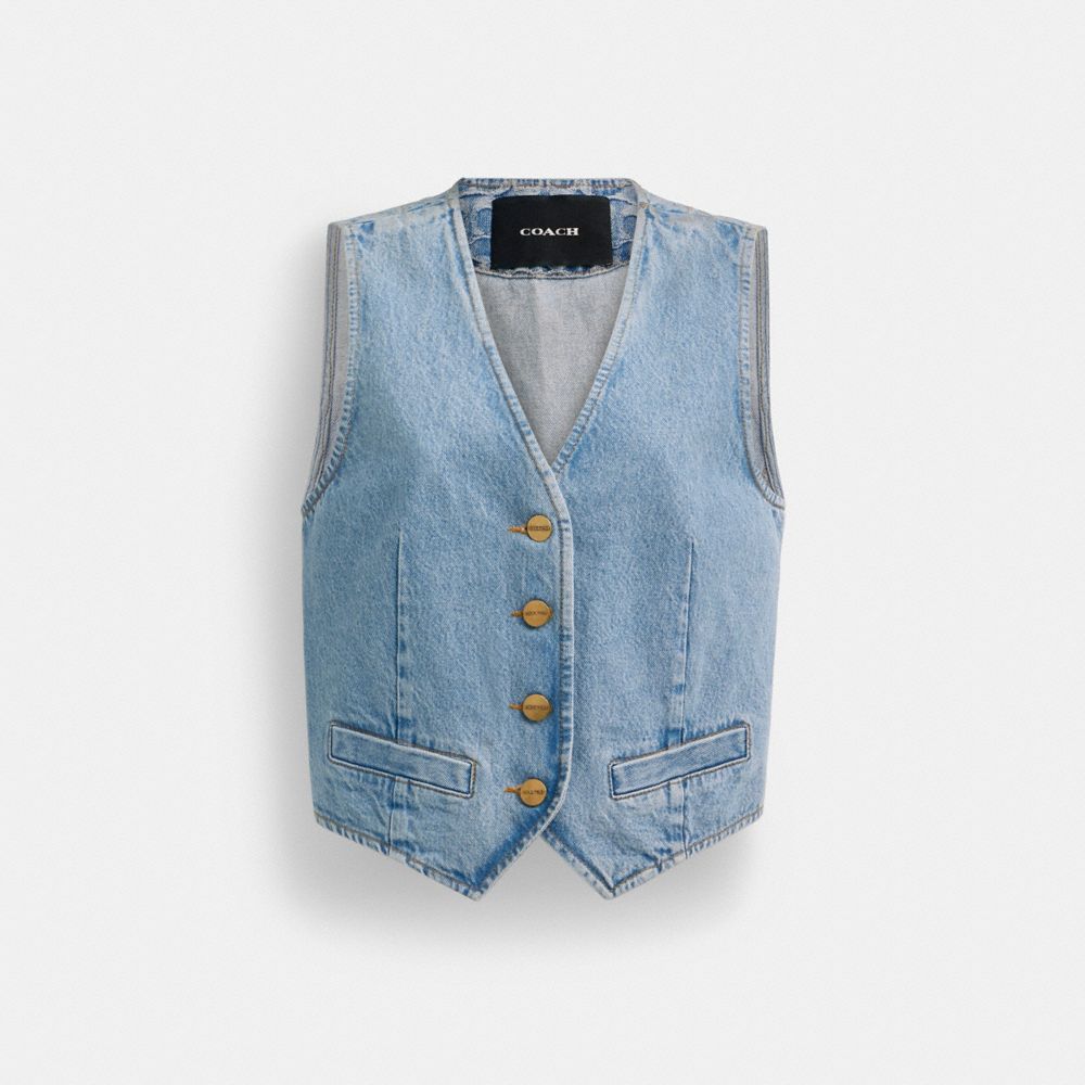 Coach Denim Vest In Organic Cotton Blauw | COH865987