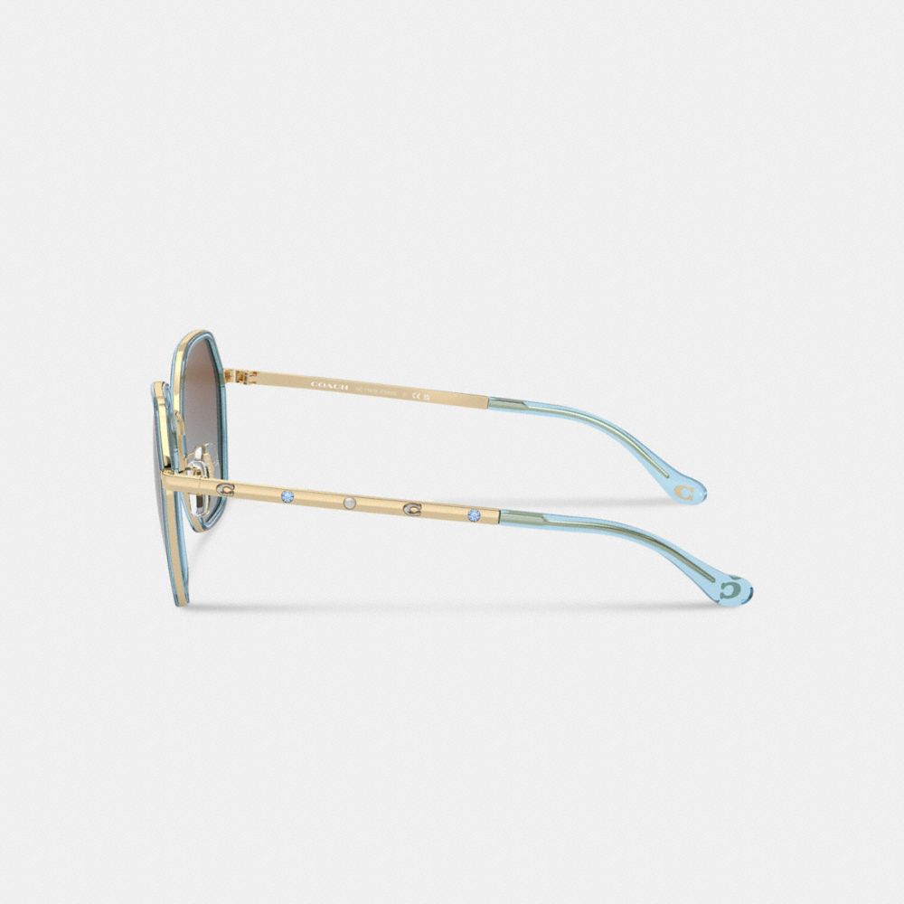 Coach Embellished Narrow Metal Hexagon Sunglasses Blauw | COH866323