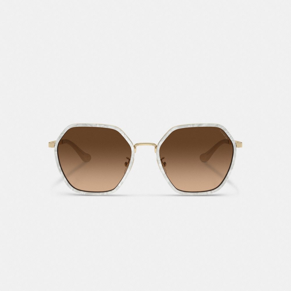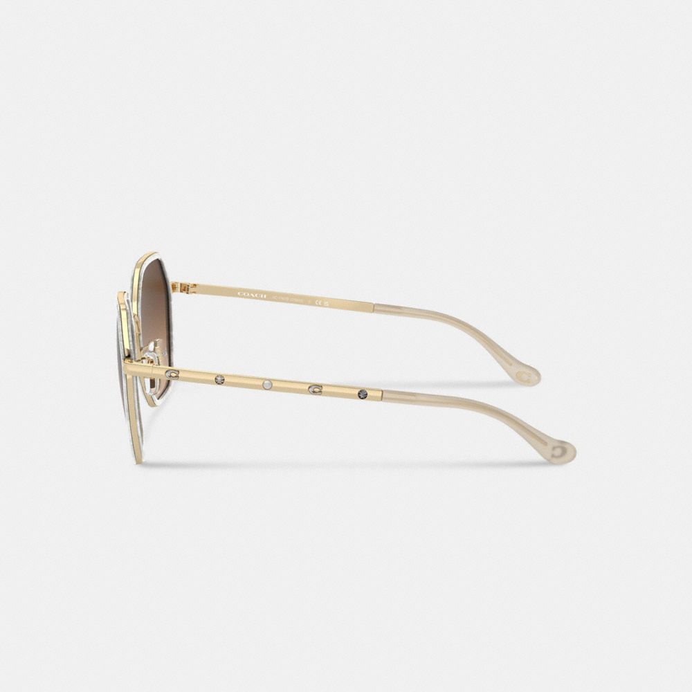 :: Coach Embellished Narrow Metal Hexagon Sunglasses Bruin | COH866379