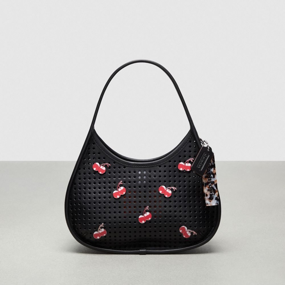 :: Coach Ergo Bag In Perforated Upcrafted Leather With Cherry Pins Zwart | COH865149