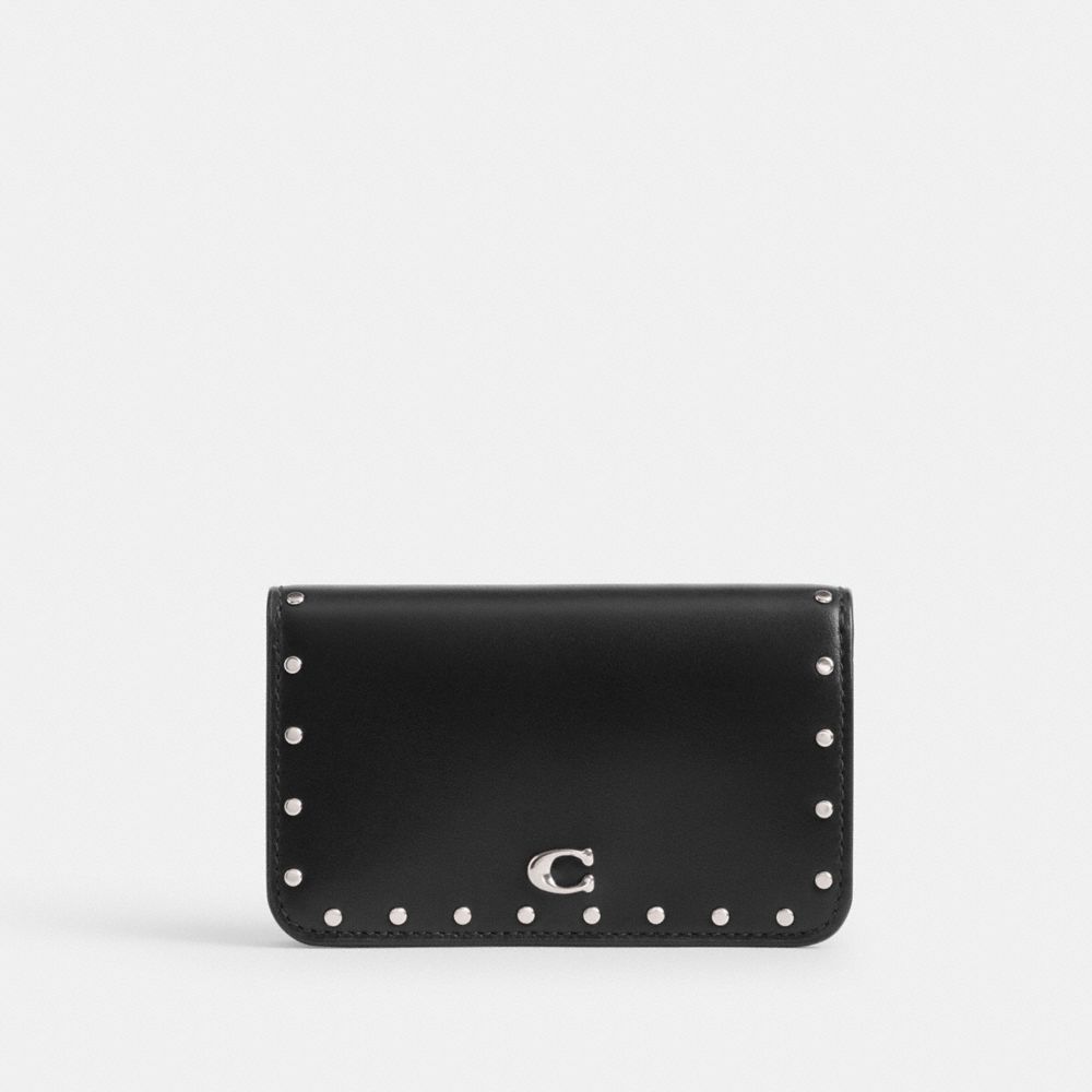 Coach Essential Slim Card Case With Rivets Zilver Zwart | COH865512