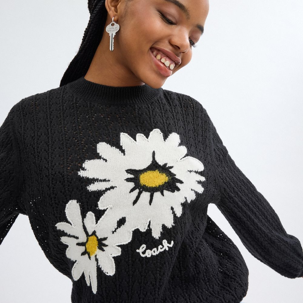 Coach Floral Crewneck Sweater Zwart | COH865999