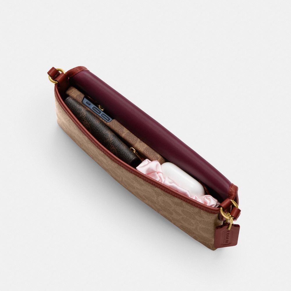 :: Coach Hamptons Bag In Signature Canvas Bruin Rood | COH864892