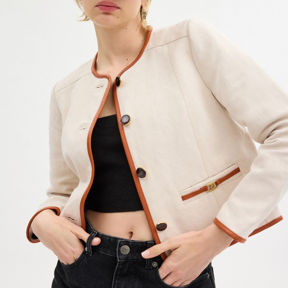 Coach Heritage C Canvas Cardigan Jacket With Leather Trim Room | COH865941