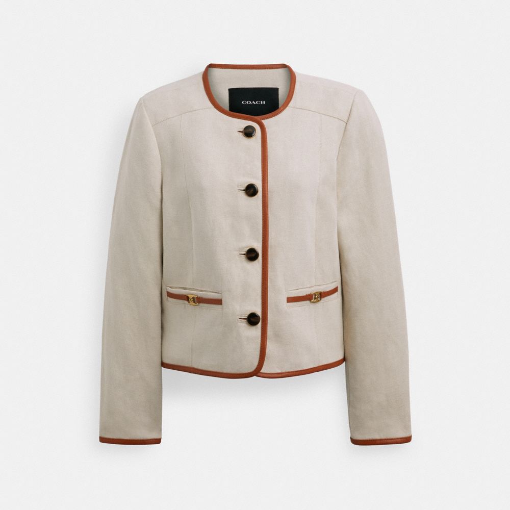 :: Coach Heritage C Canvas Cardigan Jacket With Leather Trim Room | COH865941