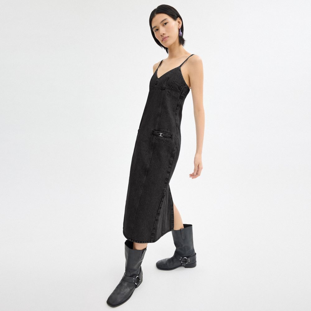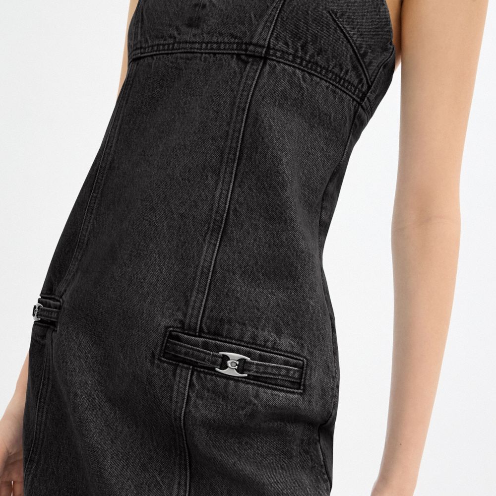 Coach Heritage C Long Denim Dress In Organic Cotton Zwart | COH866057