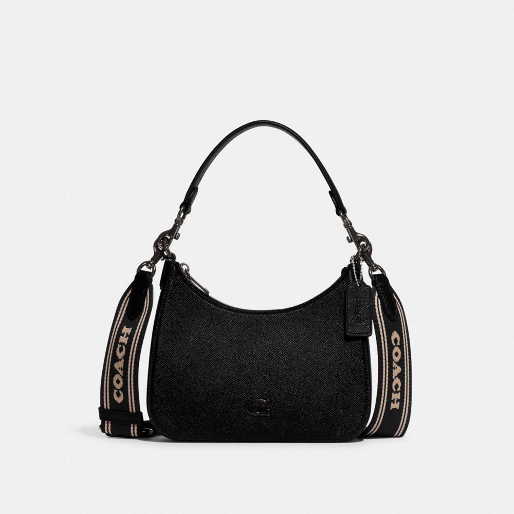 :: Coach Hobo Crossbody Bag With Signature Canvas Zwart | COH865376