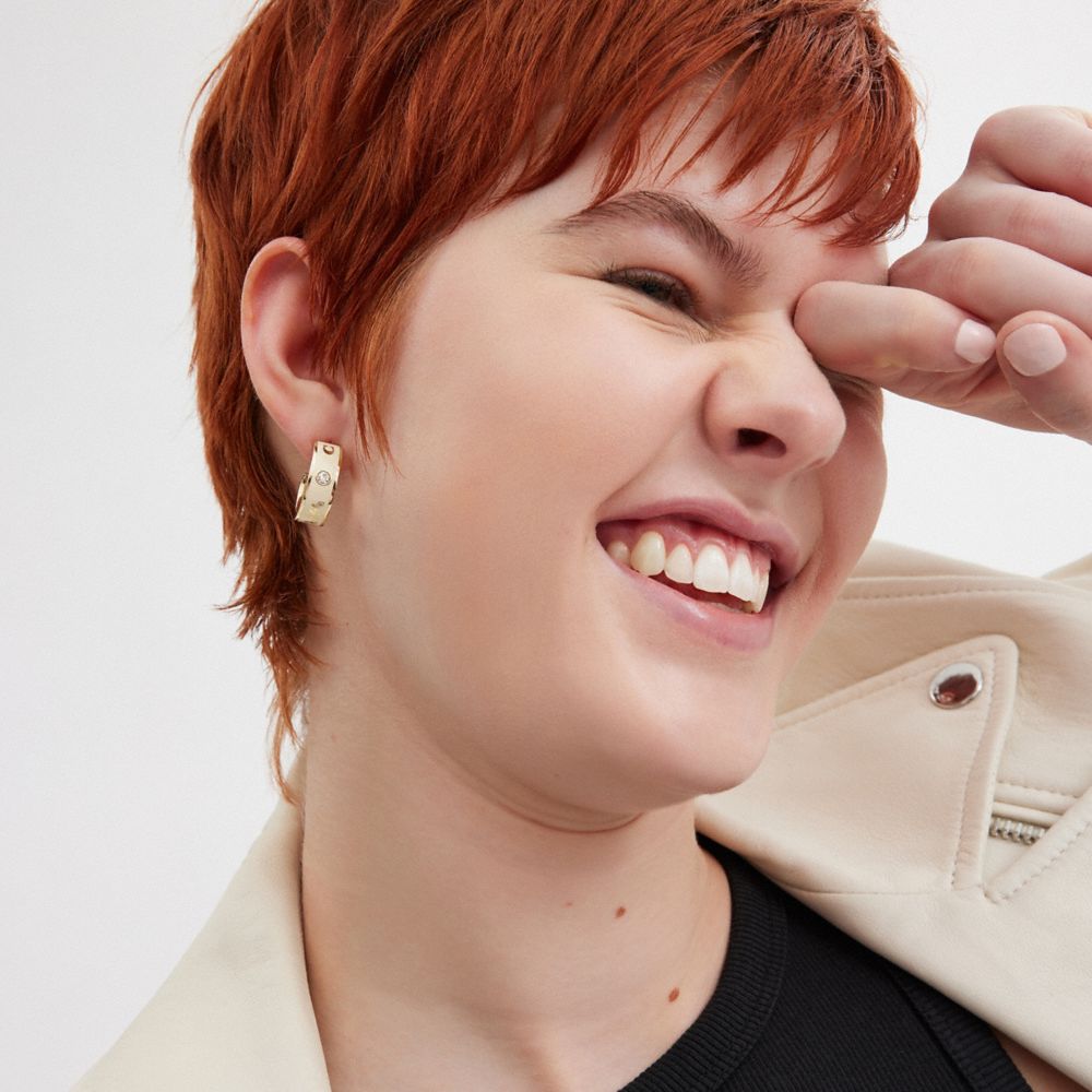 Coach Horse And Carriage Enamel Huggie Earrings Goud | COH866224