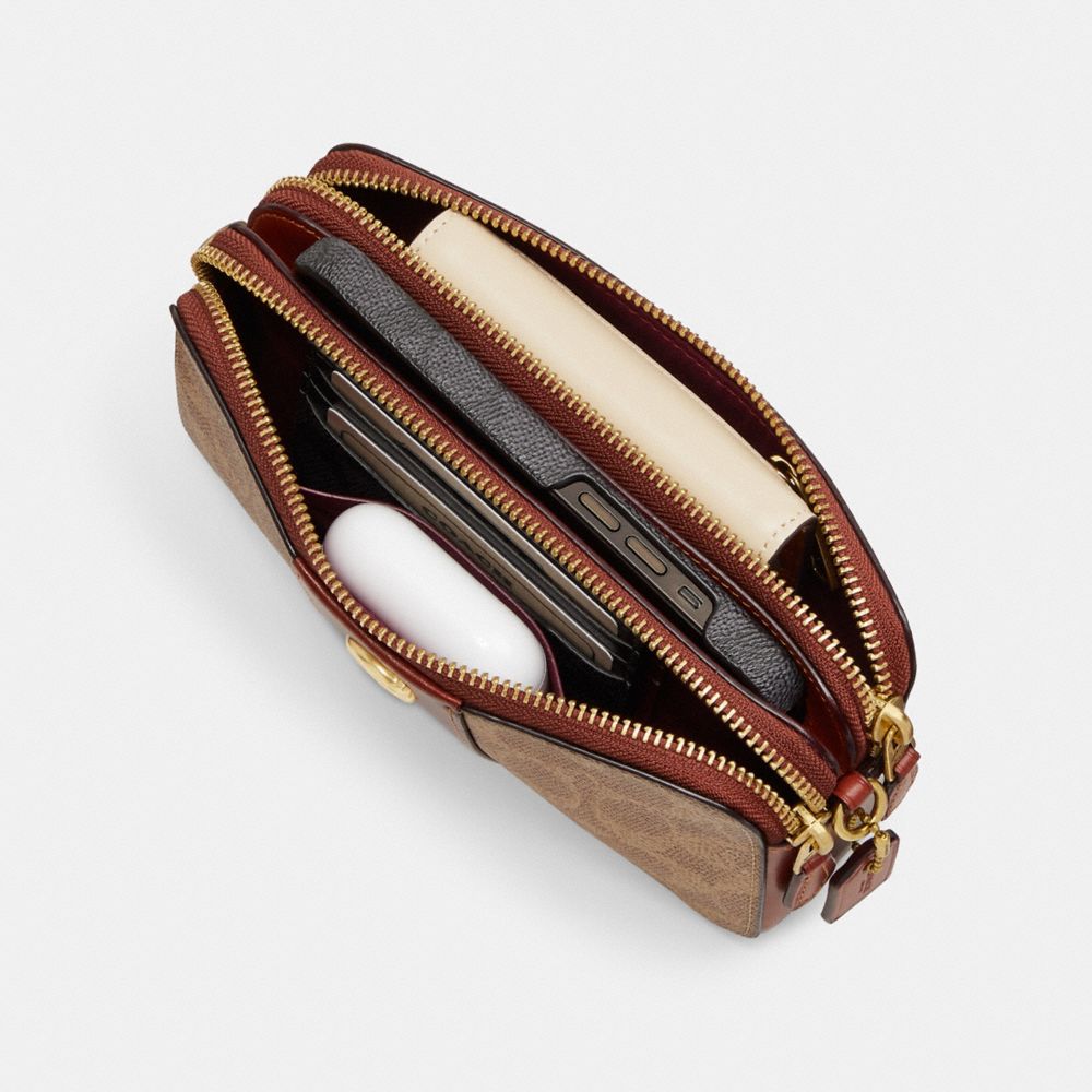 :: Coach Kira Crossbody Bag In Colorblock Signature Canvas Bruin Rood | COH865637
