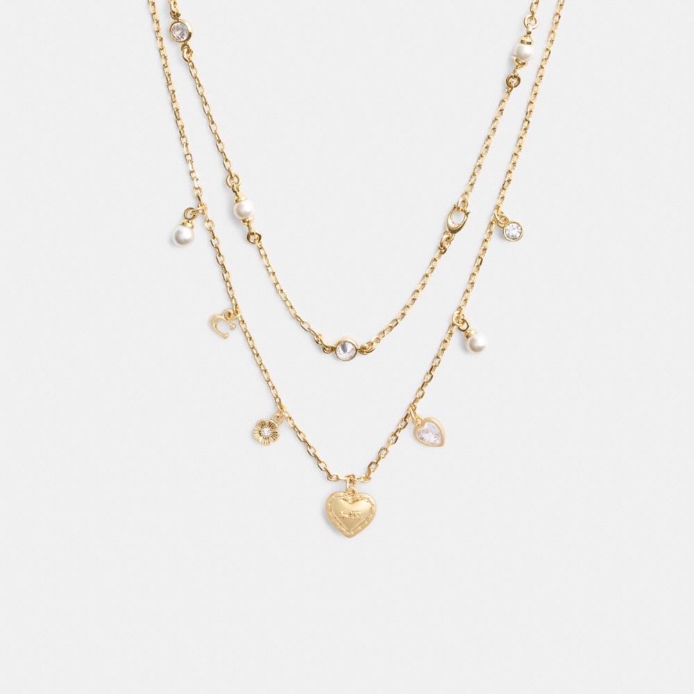 :: Coach Layered Heart Charm Necklace Goud | COH866208