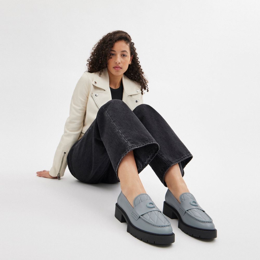 Coach Leah Loafer With Quilting Grijs Blauw | COH865799