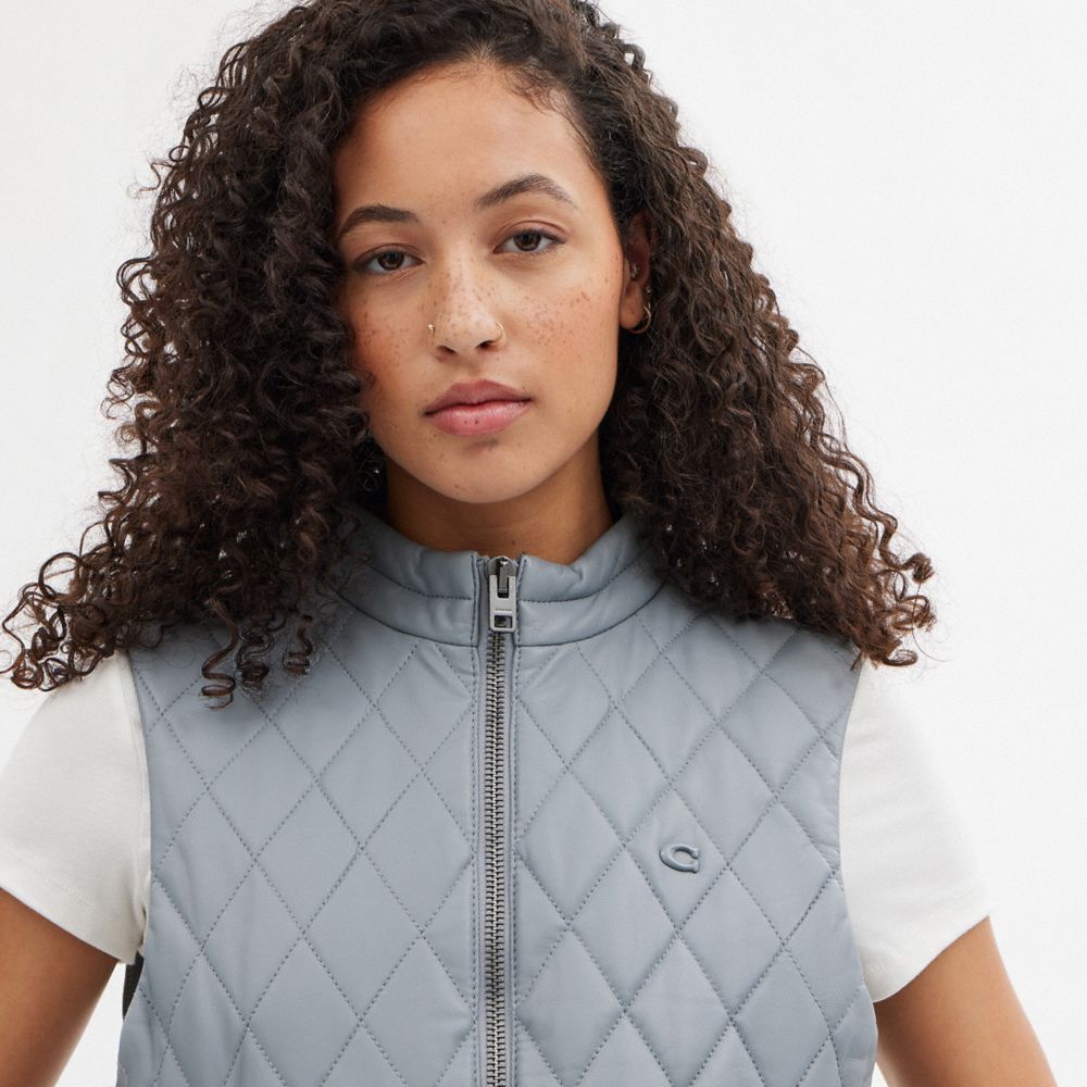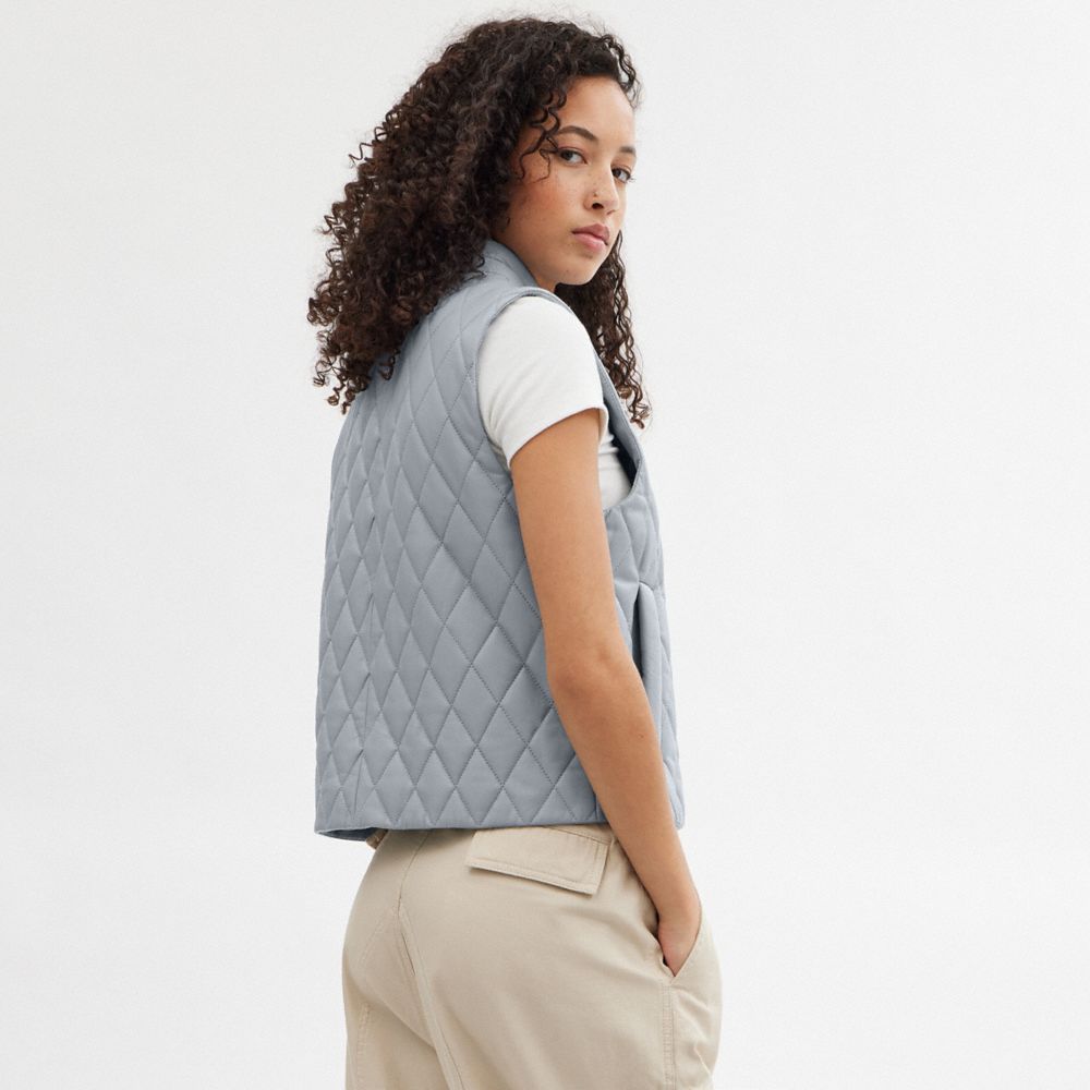 Coach Leather Quilted Vest Blauw | COH865919