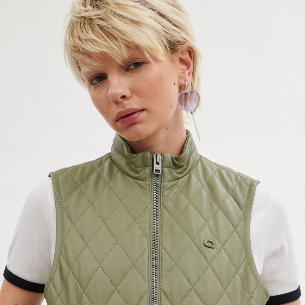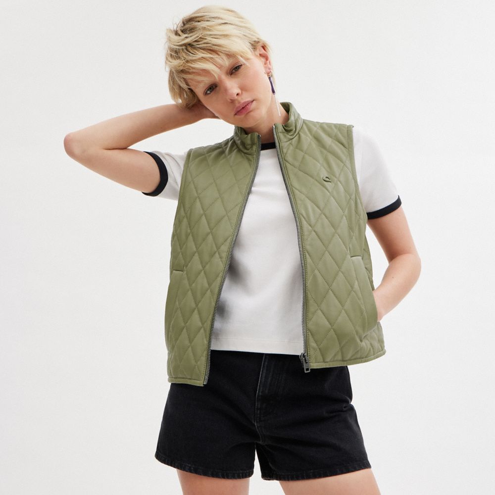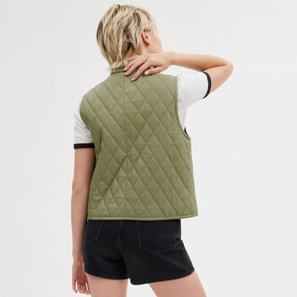 :: Coach Leather Quilted Vest Groen | COH865934