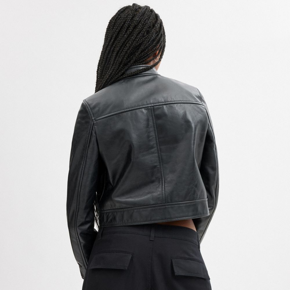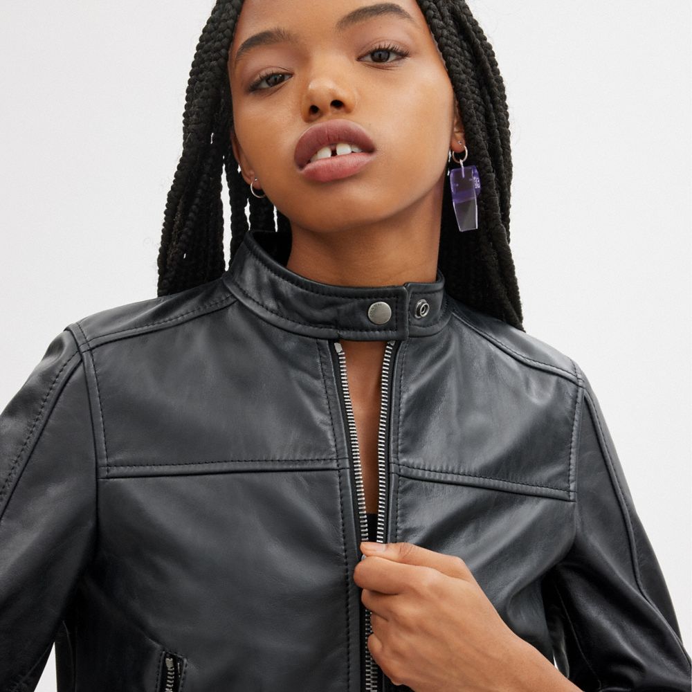 :: Coach Leather Racing Jacket Zwart | COH865928