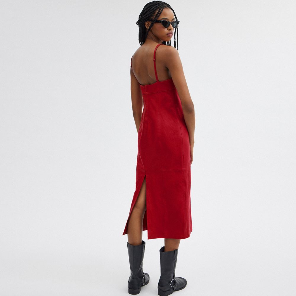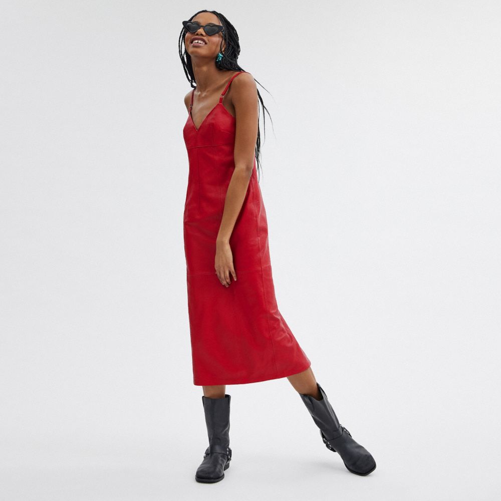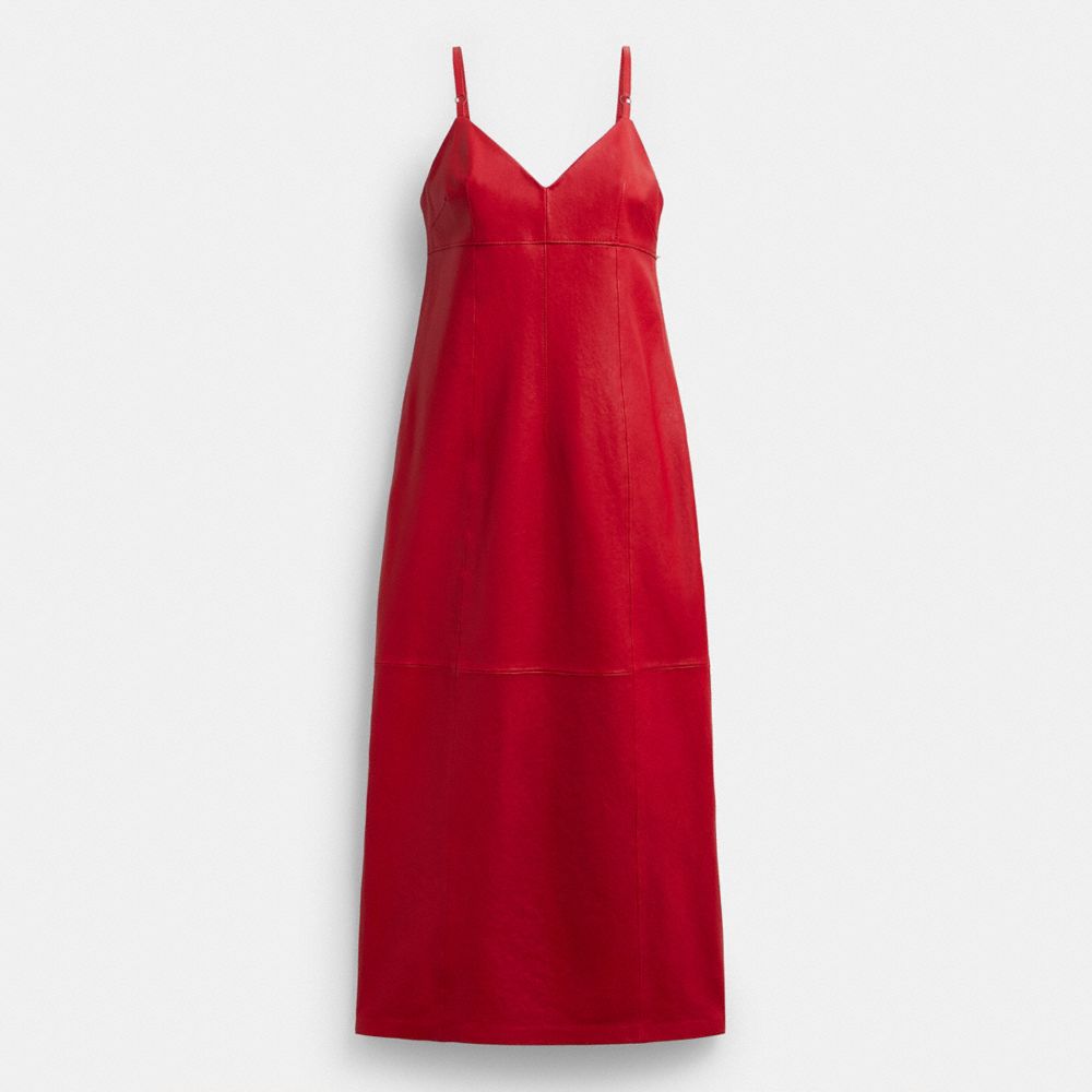 :: Coach Long Leather Dress Rood | COH866060