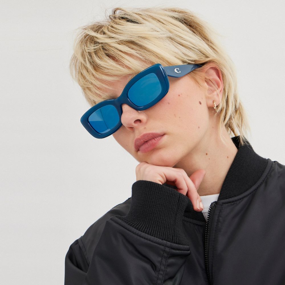 Coach Pillow Tabby Narrow Rectangle Sunglasses Blauw | COH866330