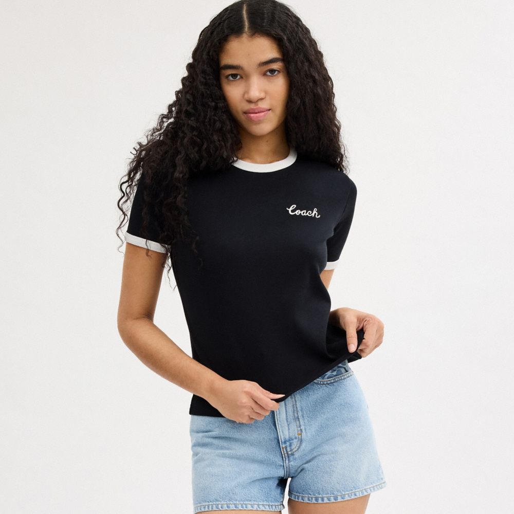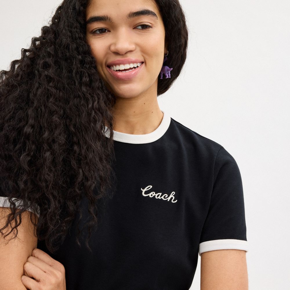 Coach Ringer T Shirt Zwart | COH865949
