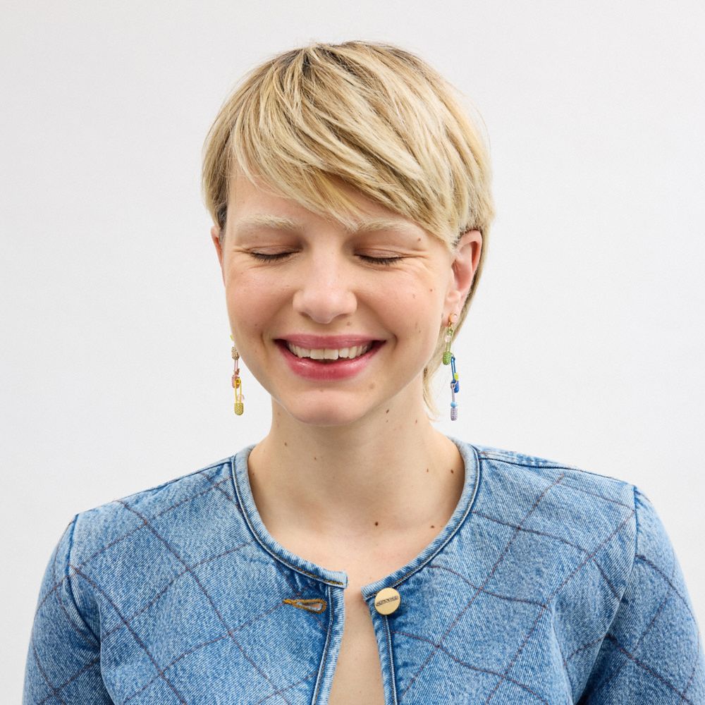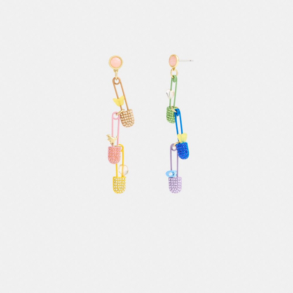 Coach Safety Pin Charm Drop Earrings Goud Gekleurd | COH866162