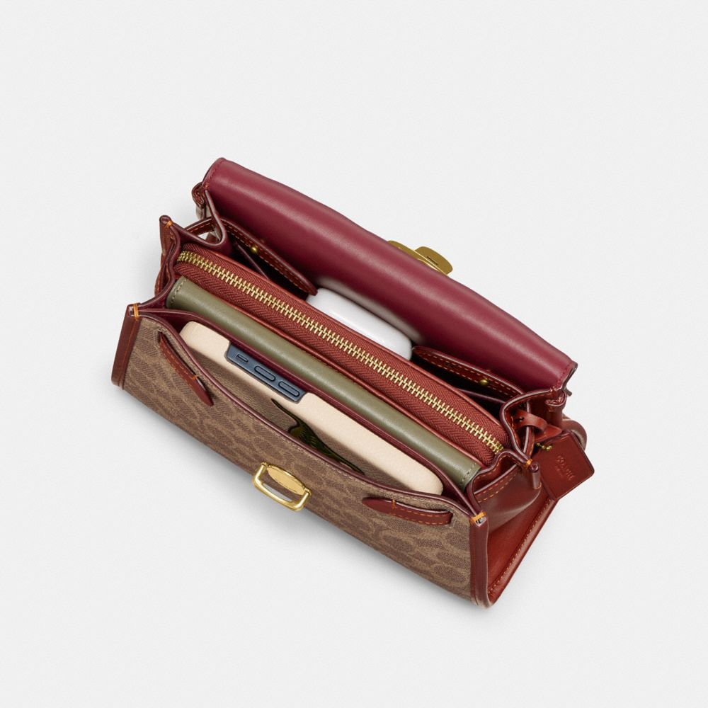 Coach Sammy Top Handle Bag In Signature Canvas Bruin Rood | COH865155