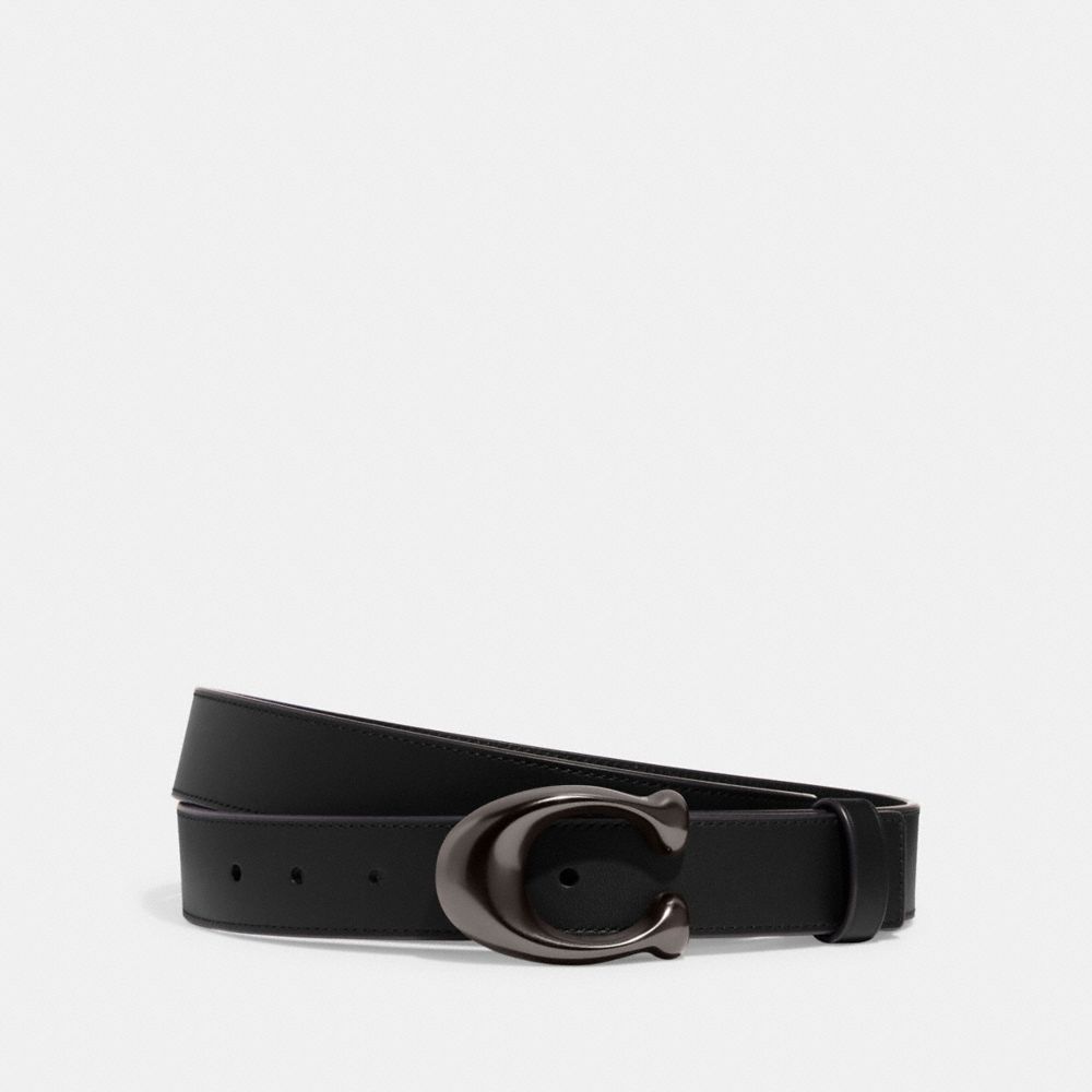 :: Coach Sculpted C Buckle Cut To Size Reversible Belt, 32 Mm Blauw Grijs Zwart | COH866319