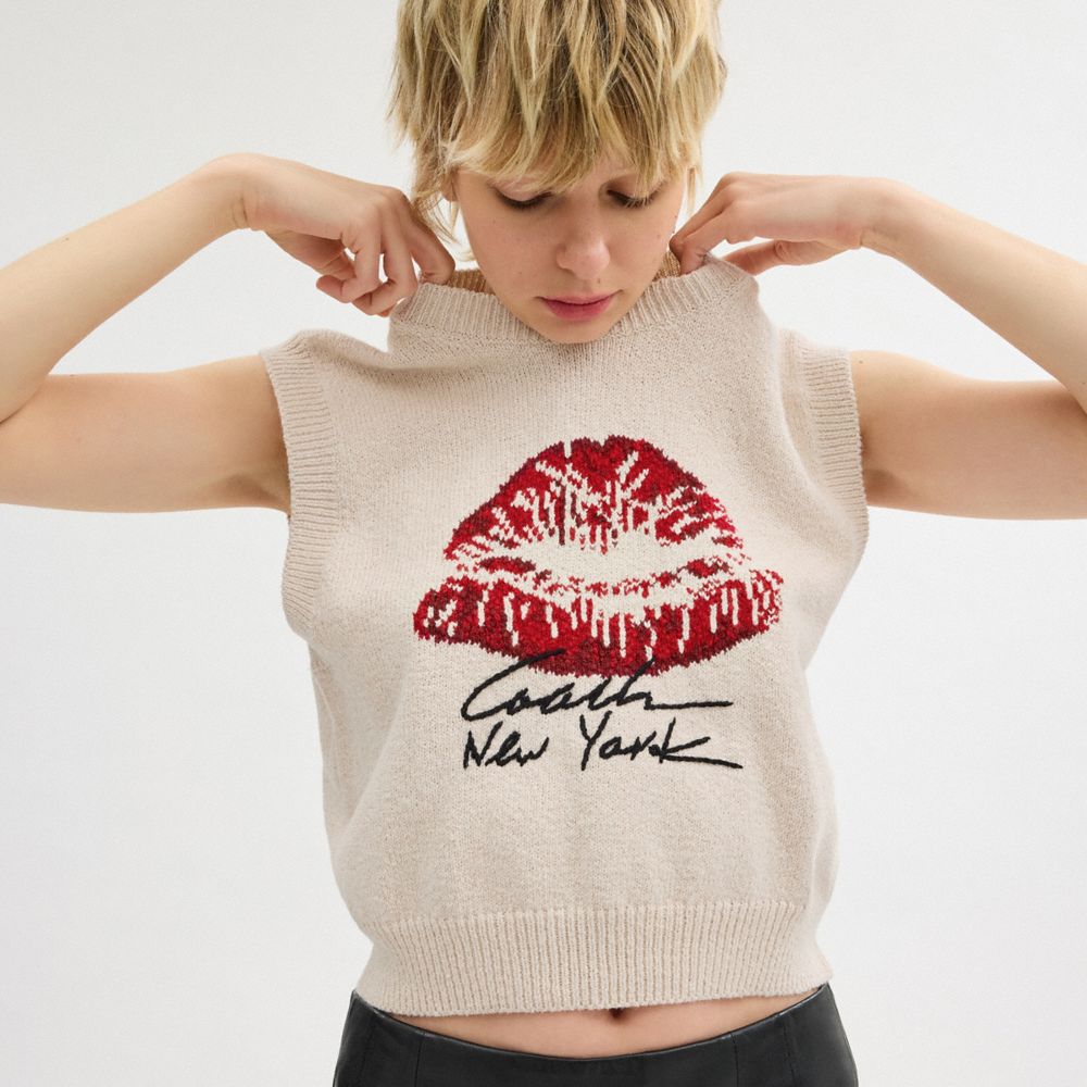 :: Coach Signature Kiss Print Sweater Vest Wit | COH865991