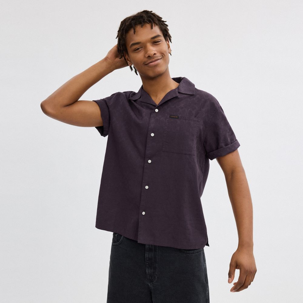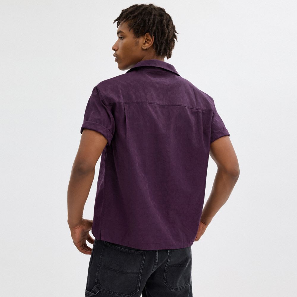 :: Coach Signature Woven Shirt In Organic Cotton Paars | COH866932