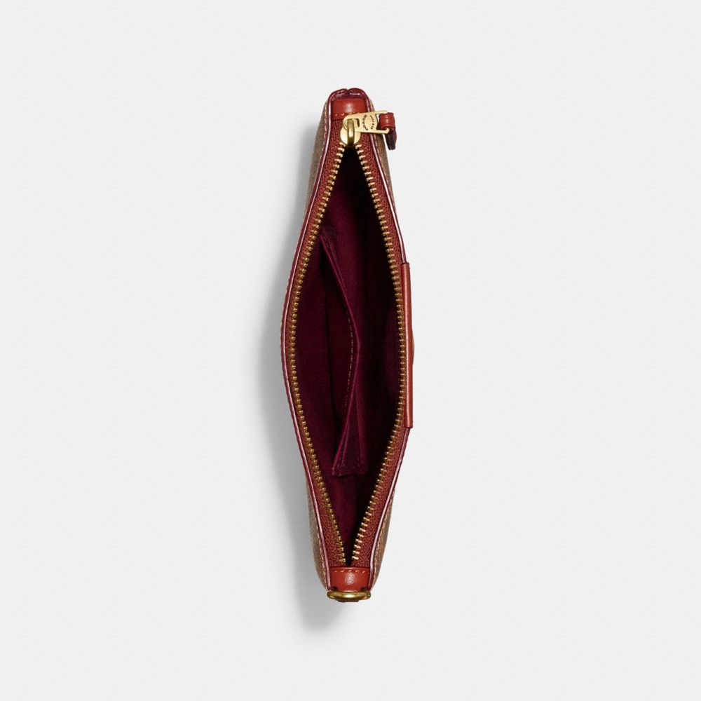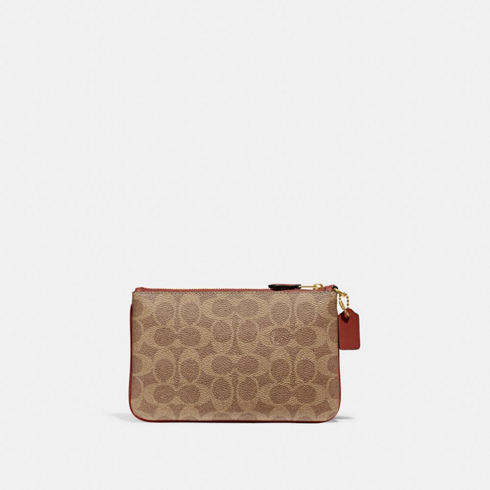 :: Coach Small Wristlet In Signature Canvas Bruin Rood | COH865645
