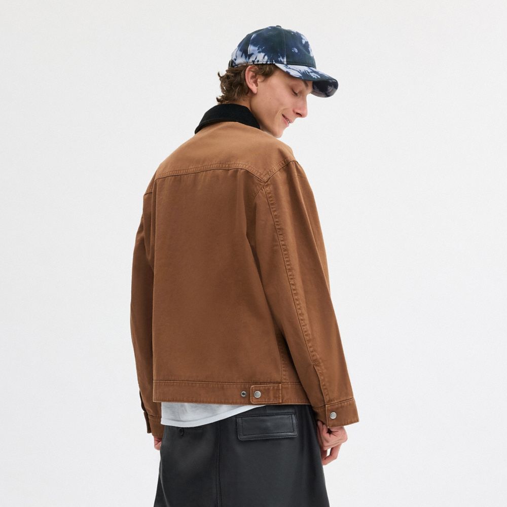 :: Coach Solid Lightweight Jacket In Regenerative Cotton Bruin | COH866878