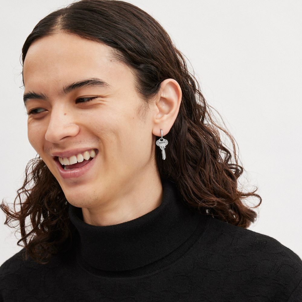 Coach Sterling Silver Key Single Huggie Earring Zilver | COH867028