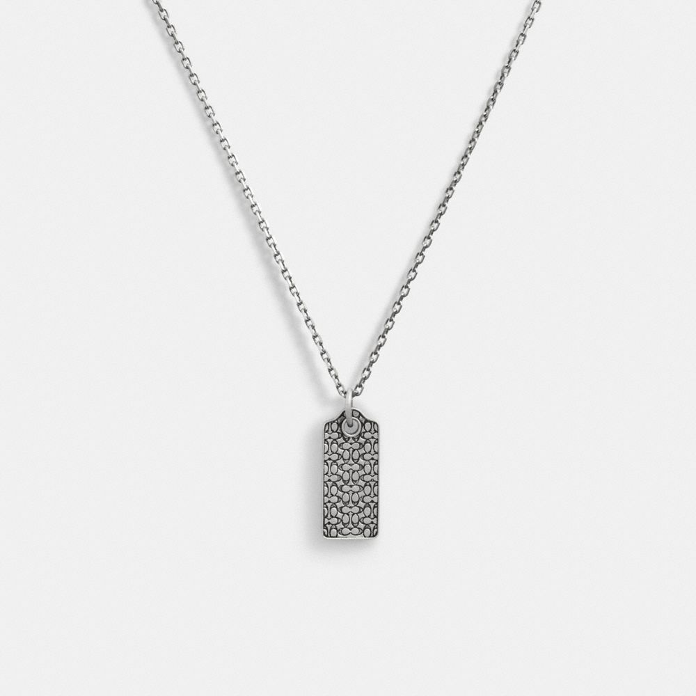 :: Coach Sterling Silver Quilted Hangtag Long Pendant Necklace Zilver | COH867029
