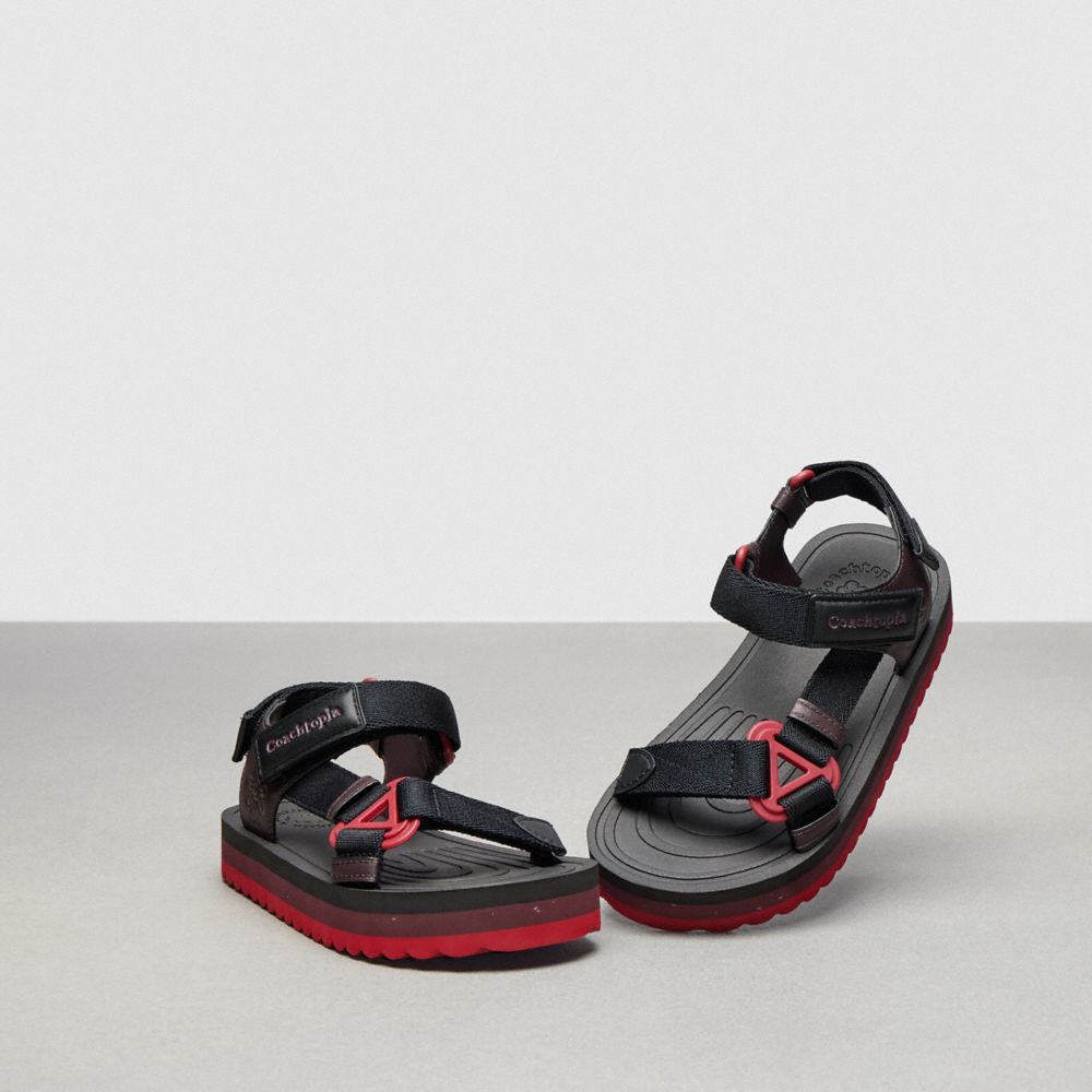 Coach Strappy Sandal Zwart Bordeaux Gekleurd | COH865895