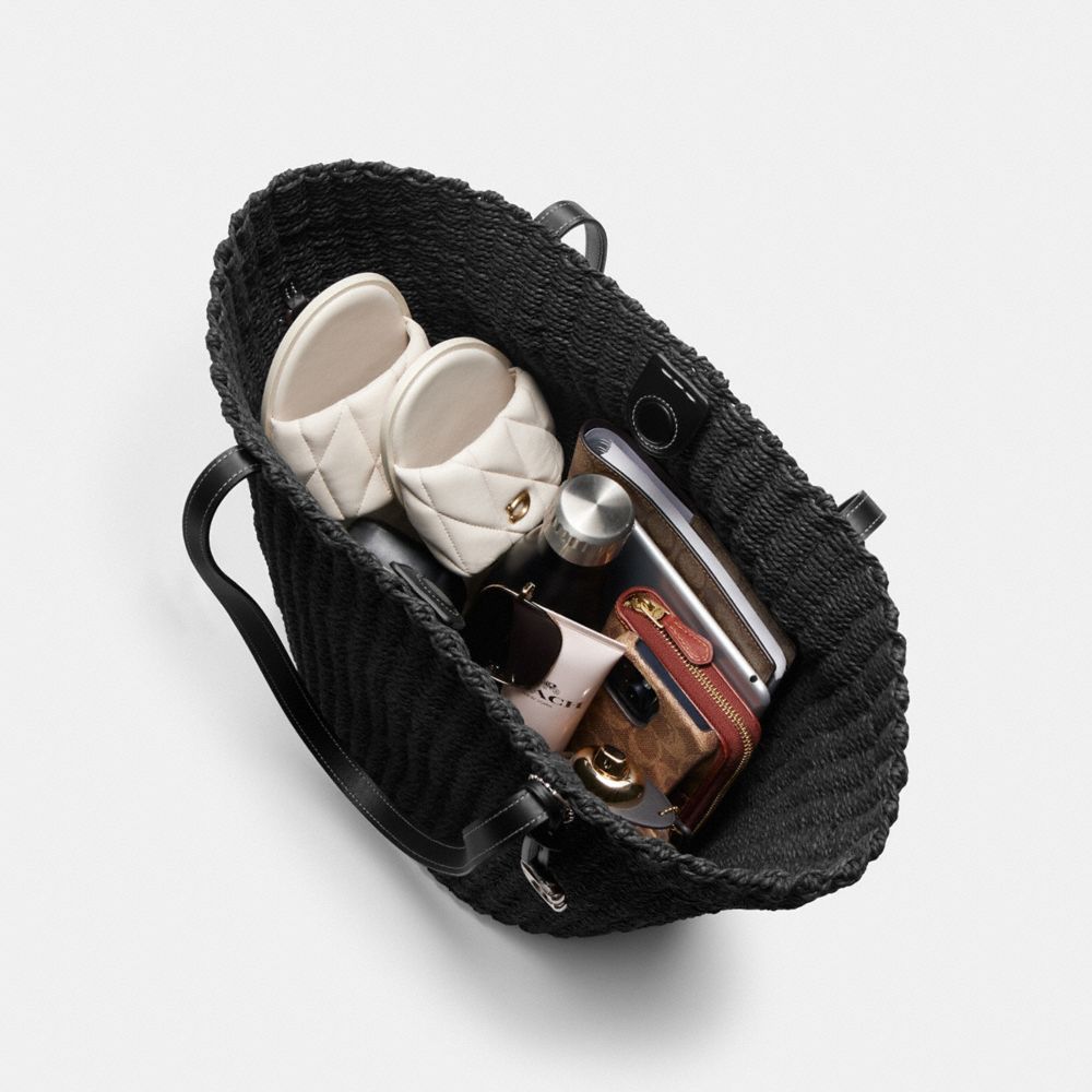 Coach Straw Tote Zilver Zwart | COH865087
