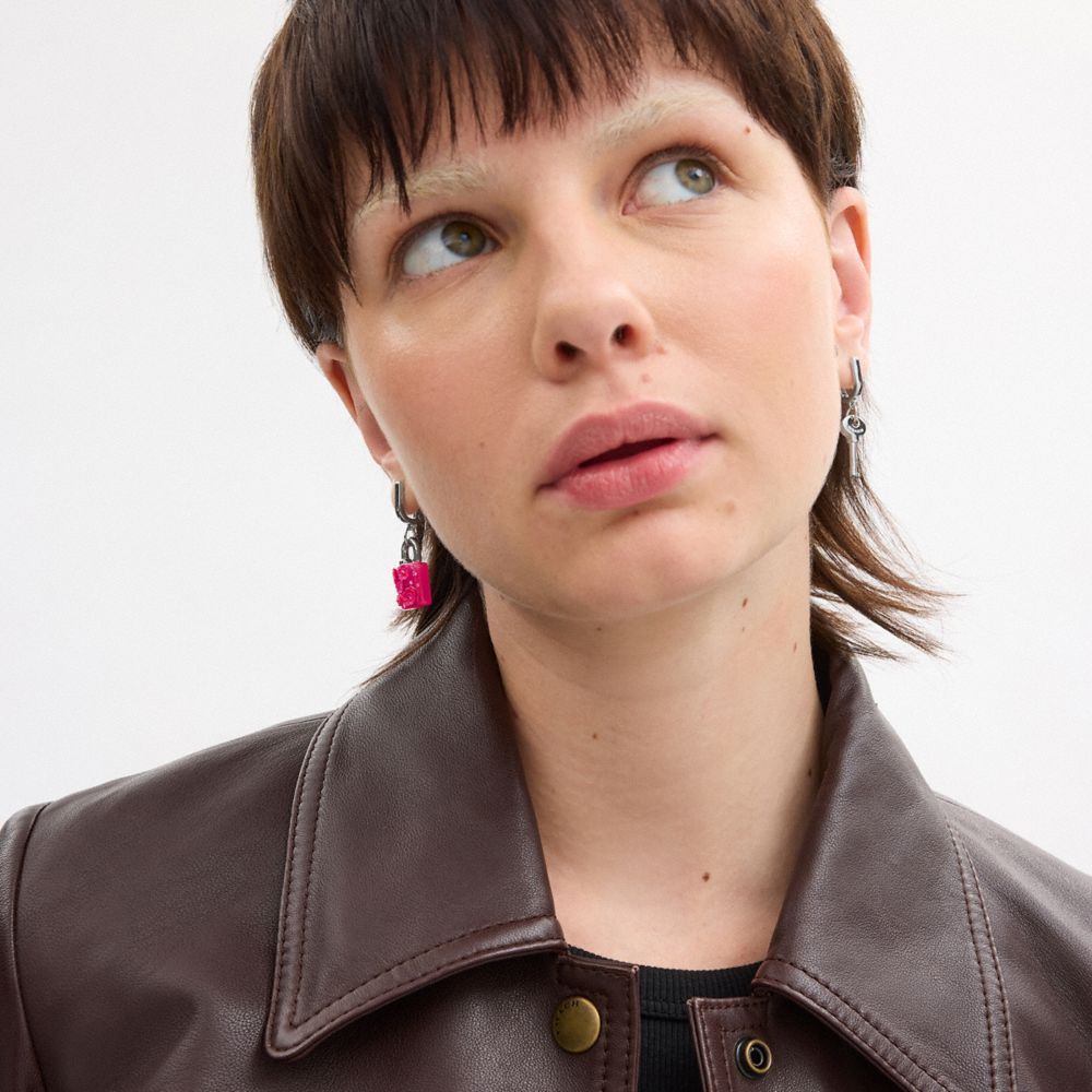 :: Coach Tea Rose Padlock And Key Mismatch Huggie Earrings Zilver Roze | COH866215