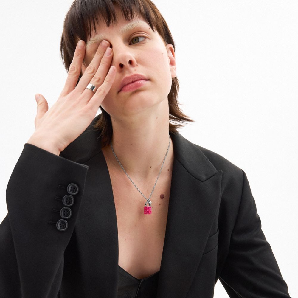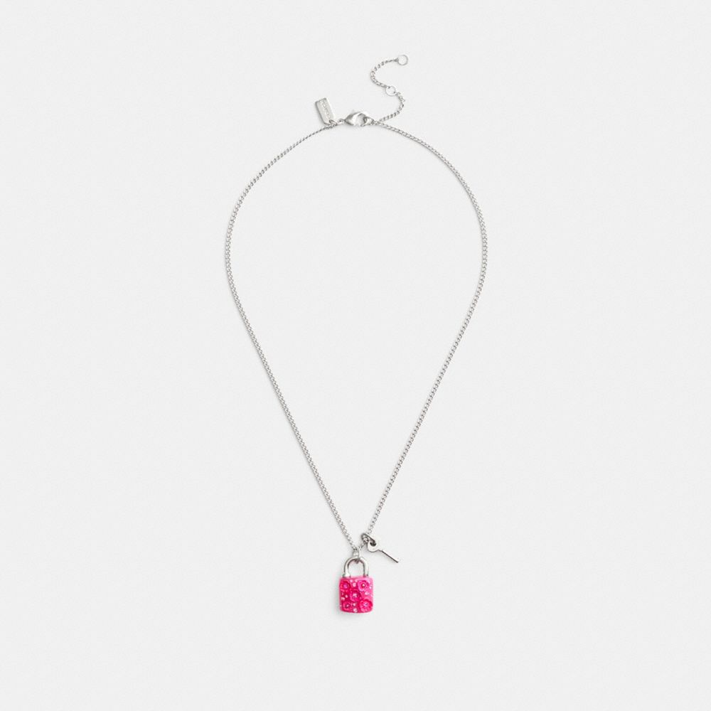 Coach Tea Rose Padlock And Key Pendant Necklace Zilver Roze | COH866212