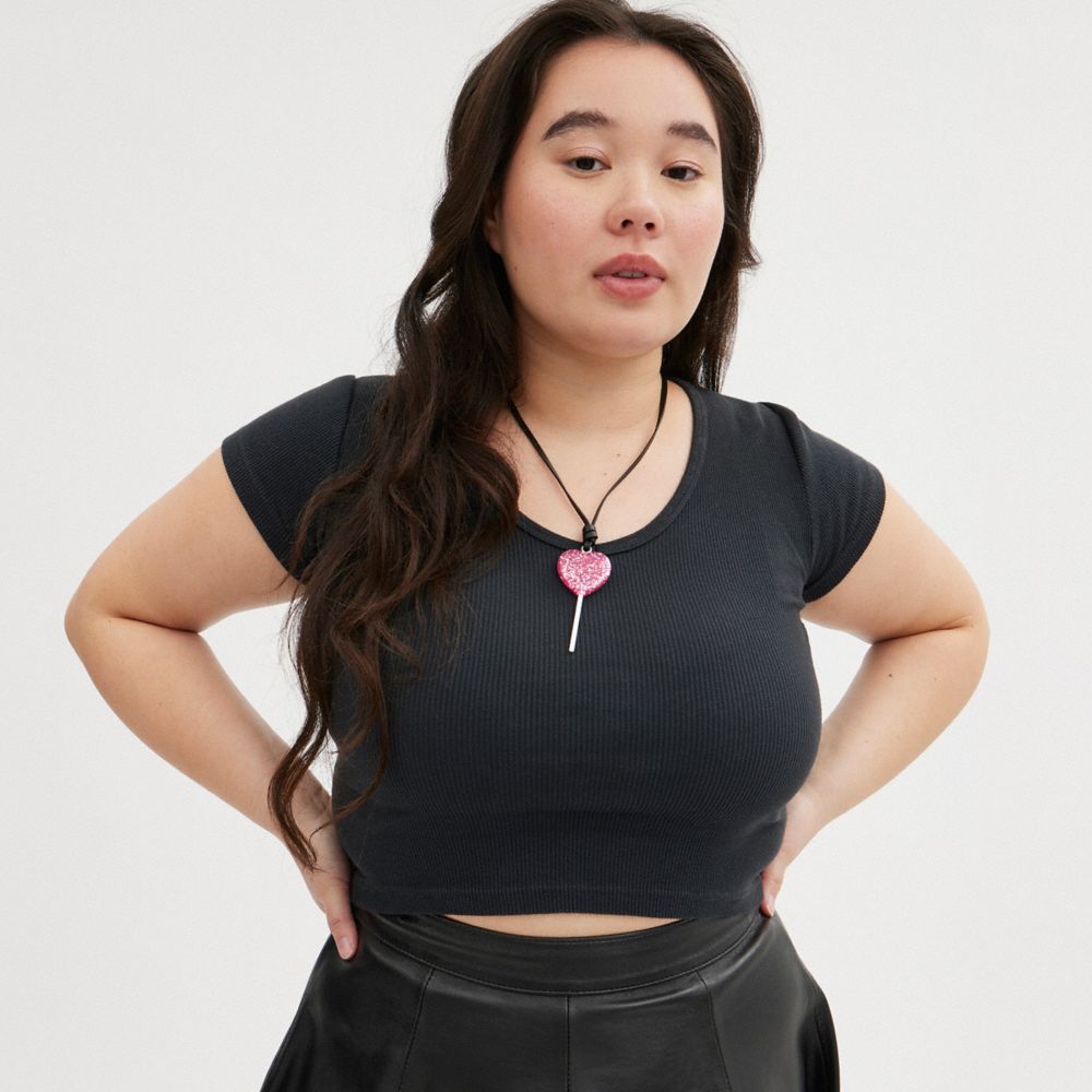 Coach The Lil Nas X Drop Heart Lollipop Necklace Zilver Roze | COH866115